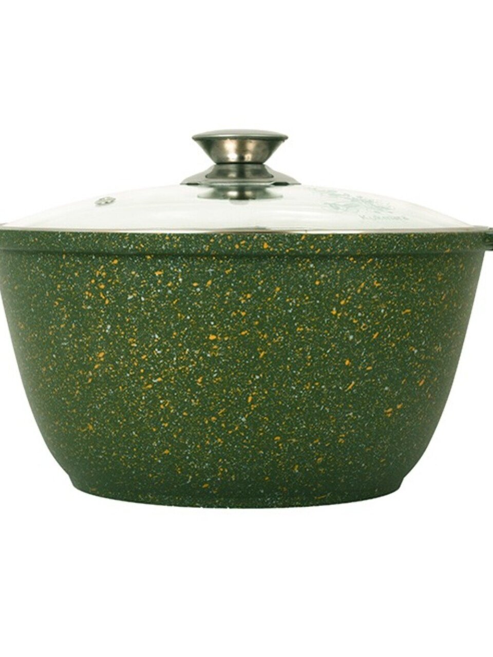 Кастрюля Kukmara Trendy style объёмом 2 литра создана для тех, кто ценит удобство и безопасность в быту. Гранитное антипригарное покрытие защищает от пригорания и облегчает уход: можно мыть в посудомоечной машине, не боясь повреждений. Благодаря толстому дну (6 мм) тепло распределяется равномерно, что важно для приготовления плова, каши или овощных рагу. Малахитовый цвет и современный дизайн делают кастрюлю стильным элементом кухни или дачного интерьера.