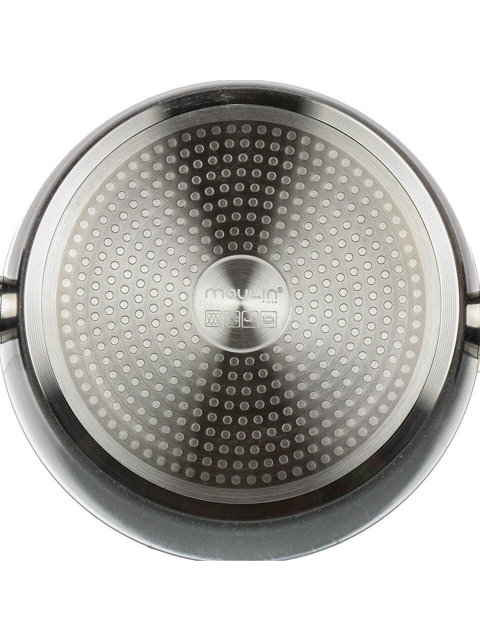 Если вы ищете, какую кастрюлю выбрать для повседневной готовки или для дачи, модель Moulin villa Titan Urban 3.9 л отвечает самым современным требованиям. Благодаря прочному алюминиевому корпусу, толстому дну и пятислойному покрытию PFLUON, блюда не пригорают, а кастрюля легко очищается, включая мытьё в посудомоечной машине. Прозрачная крышка из закаленного стекла с выпускным клапаном позволяет контролировать процесс приготовления, а бакелитовые ручки не нагреваются и обеспечивают безопасность.