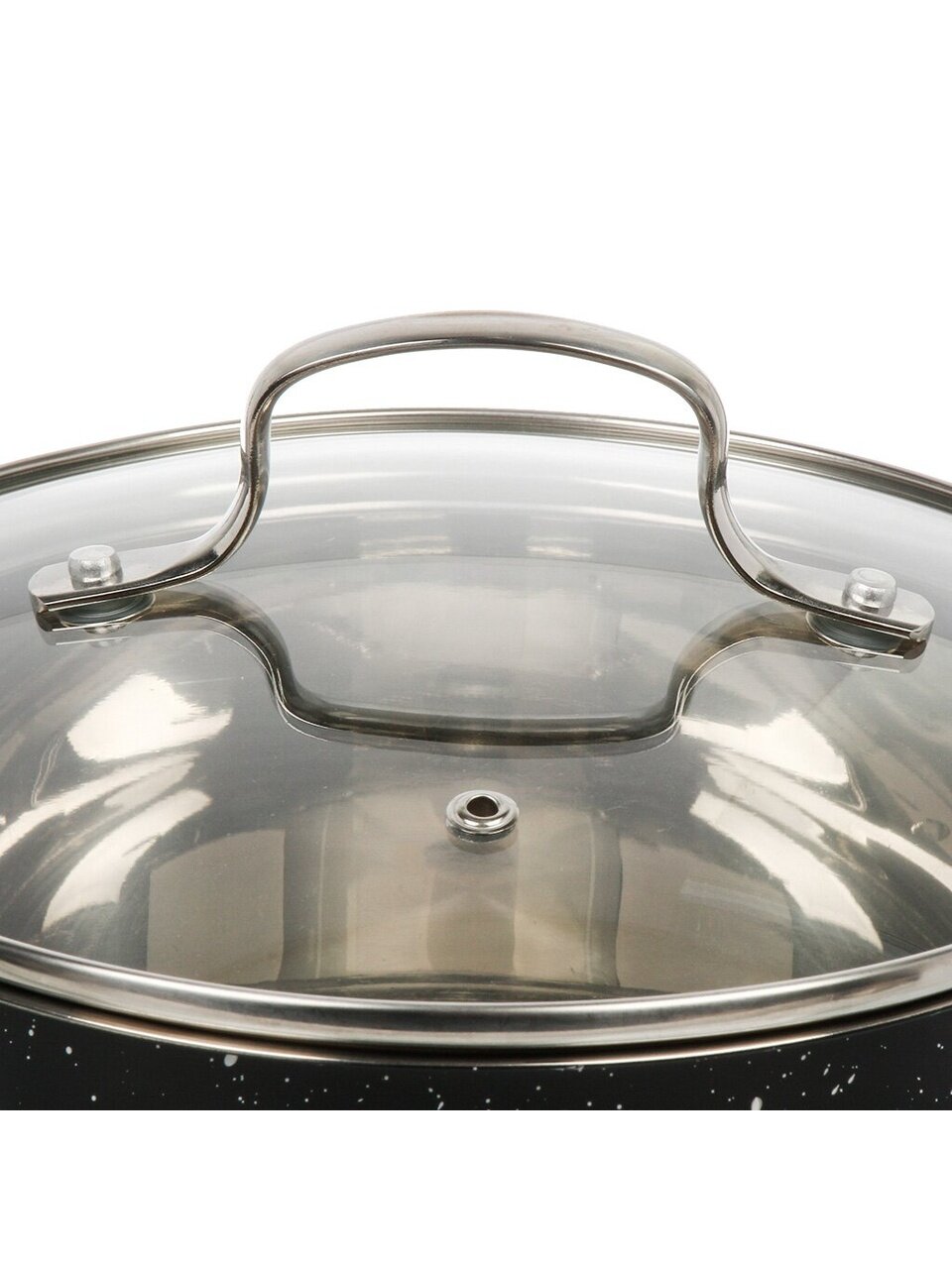- Капсульное дно 5 мм: равномерный нагрев и экономия энергии, подходит для всех типов плит, включая индукцию