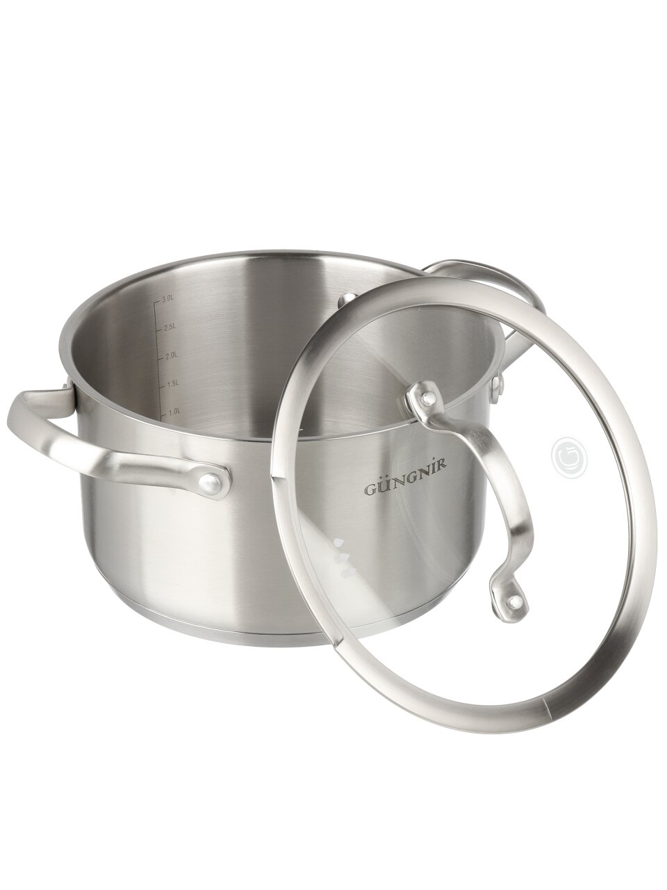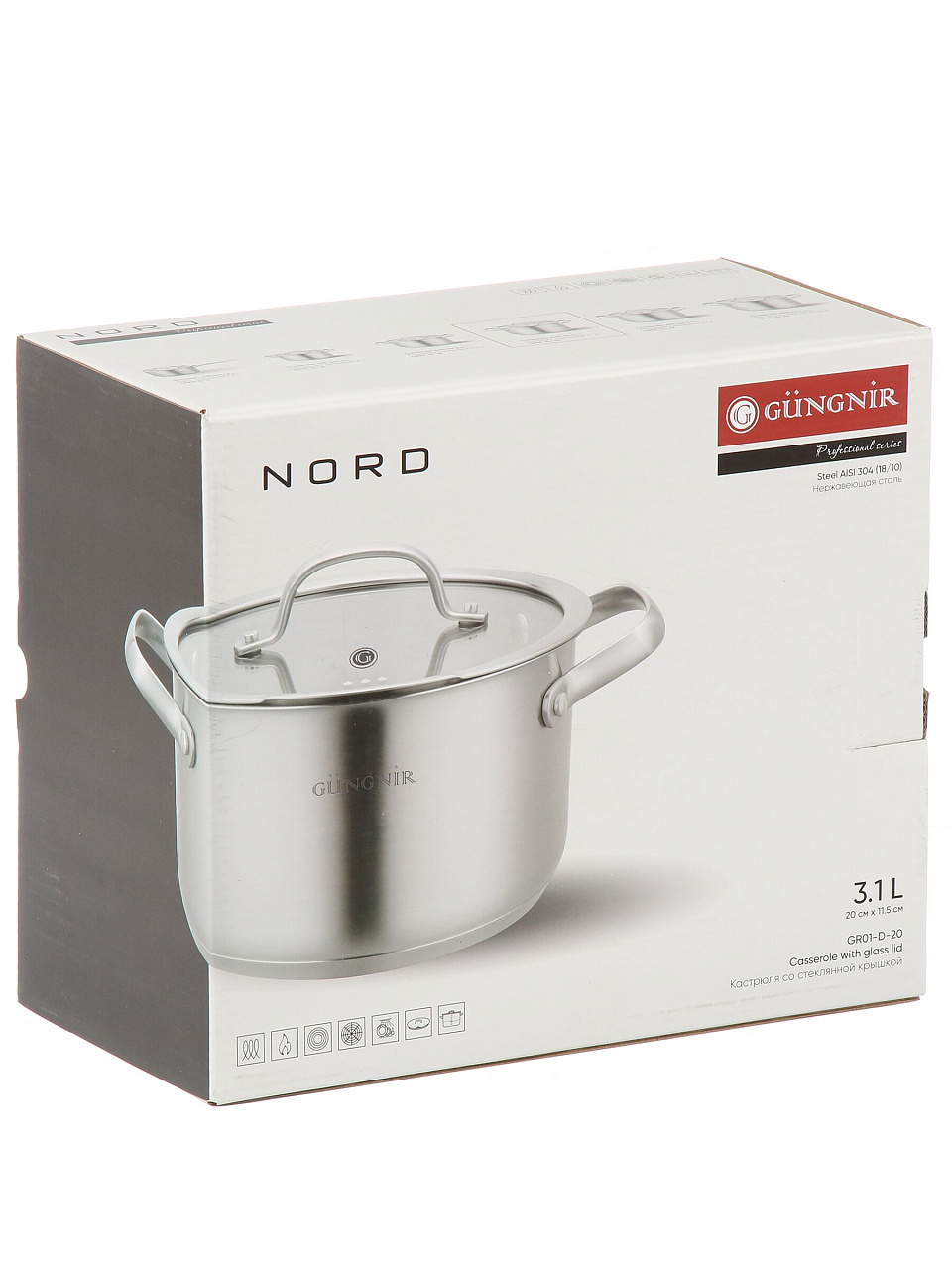 Кастрюля из нержавеющей стали 3,1 л с крышкой из стекла Катунь Nord GR01-D-20: идеальный выбор для индукционных плит, быстрая готовка и долговечность без переплат.