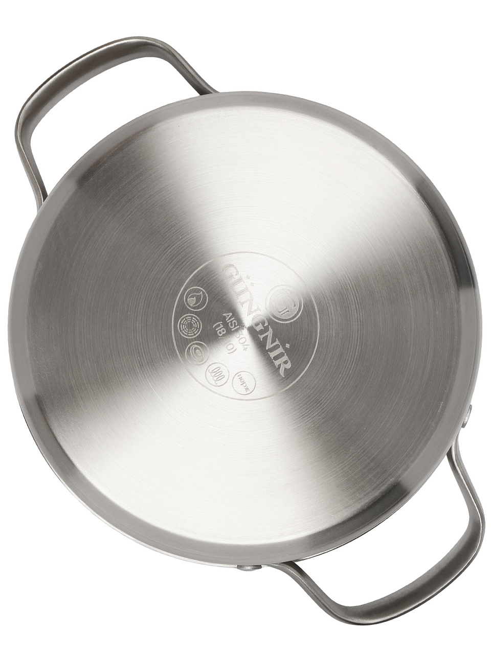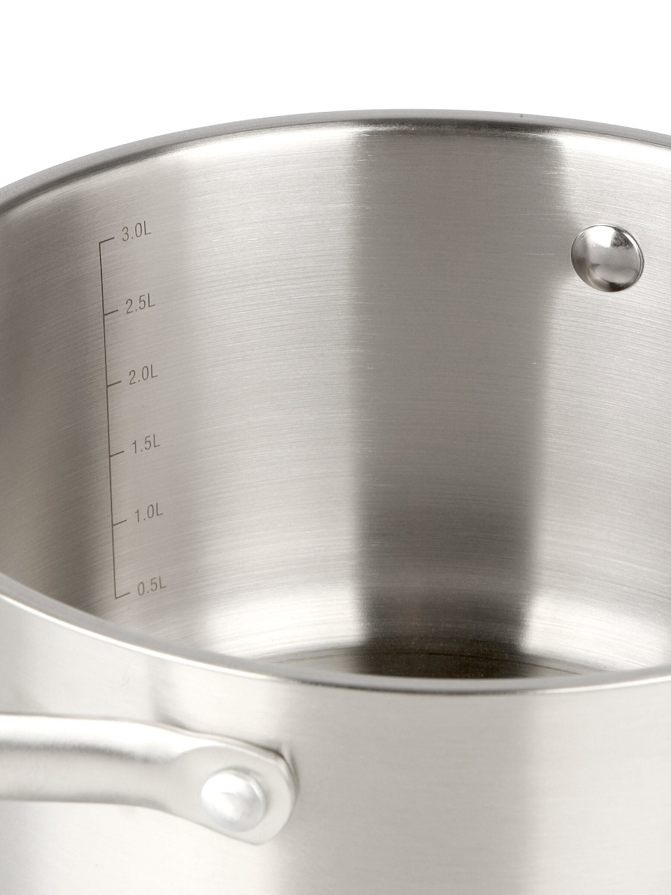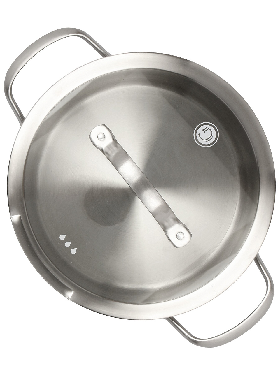 Объём — 3,1 л, материал — пищевая нержавеющая сталь, крышка — закалённое стекло с пароотводом, диаметр — 20 см, подходит для всех типов плит, срок службы — до 10 лет.