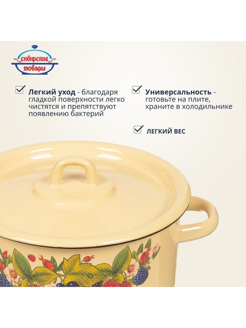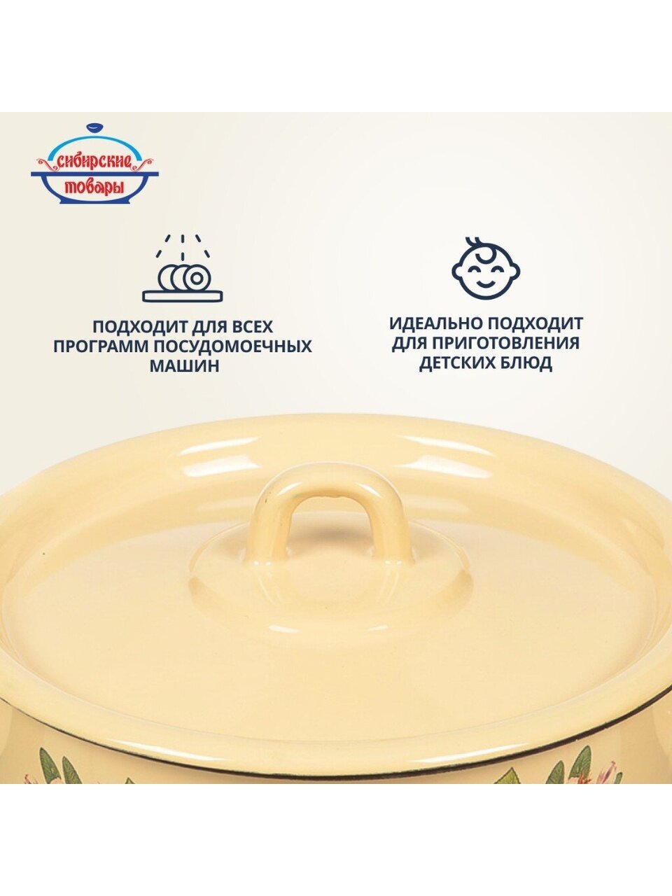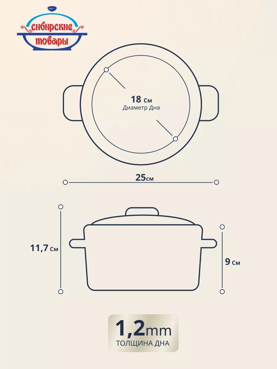 Эмалированная кастрюля 2 л «Сибирские товары»: долговечная сталь, универсальная форма, выгодный выбор для дома и дачи — готовьте любимые блюда без хлопот.