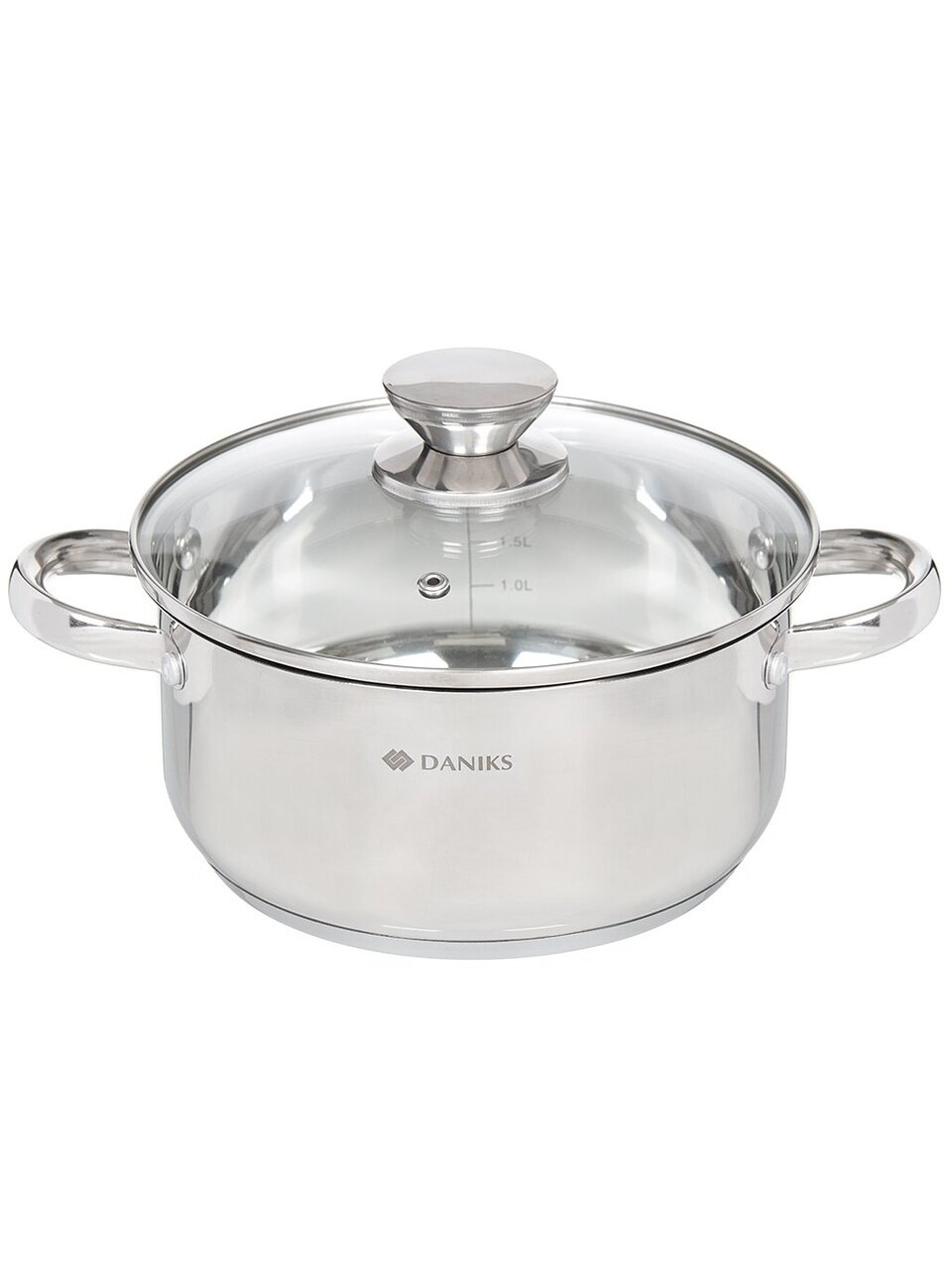 Кастрюля из нержавеющей стали Daniks Оптима 3.1 л с капсульным дном: универсальное решение для кухни, дачи и индукционных плит. Гарантия 12 мес, мерная шкала, стеклянная крышка.