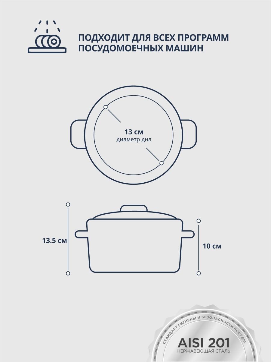Кастрюля из нержавеющей стали объёмом 1.9 литра — это оптимальное решение для ежедневного приготовления блюд. Благодаря прочной стали марки 201 и однослойному дну кастрюля быстро нагревается и сохраняет тепло, что экономит время и энергию. Стеклянная крышка с выпускным клапаном позволяет контролировать процесс варки без потери пара, а мерная шкала внутри облегчает дозировку воды и ингредиентов. Если вы ищете, какую кастрюлю выбрать для небольшой семьи или дачного использования, эта модель сочетает простоту ухода (можно мыть в посудомоечной машине) и компактность: диаметр 16 см, высота с крышкой 13,5 см.