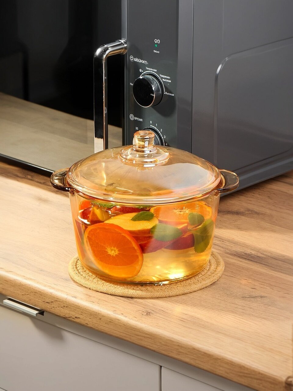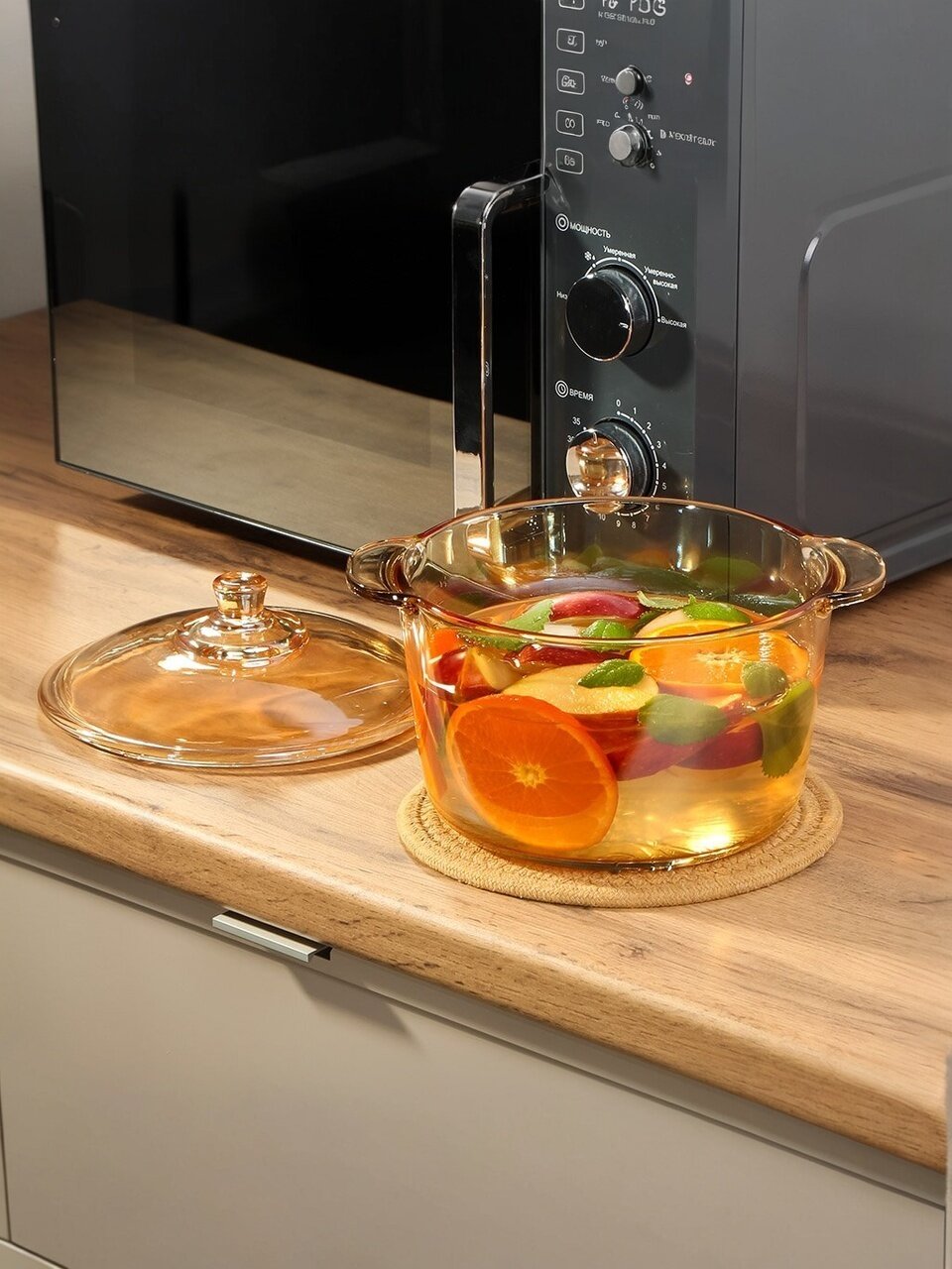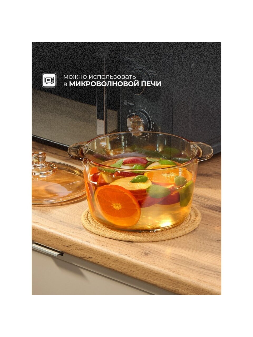Стеклянная кастрюля для микроволновки 2.5 л с крышкой: готовьте супы, каши и макароны без хлопот — безопасно, быстро и без лишних запахов.