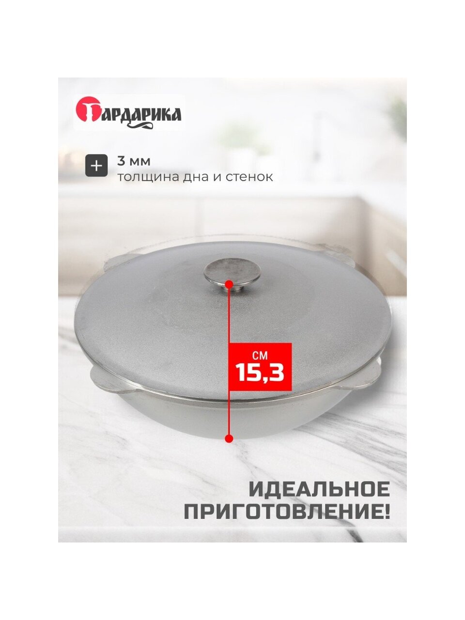- Толщина дна и стенок: 3 мм.