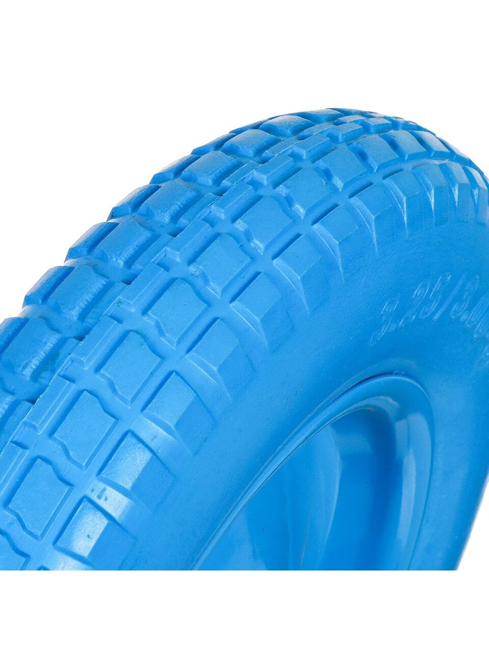 Полиуретановая бескамерная шина не требует дополнительного обслуживания и не спускает воздух, что избавляет от лишних хлопот и затрат на ремонт. Диаметр втулки 20 мм и длина оси 90 мм позволяют легко установить колесо на большинство стандартных тачек. Диаметр колеса 360 мм обеспечивает отличную проходимость и устойчивость при перевозке тяжелых грузов, а наличие подшипника способствует легкому и плавному ходу.