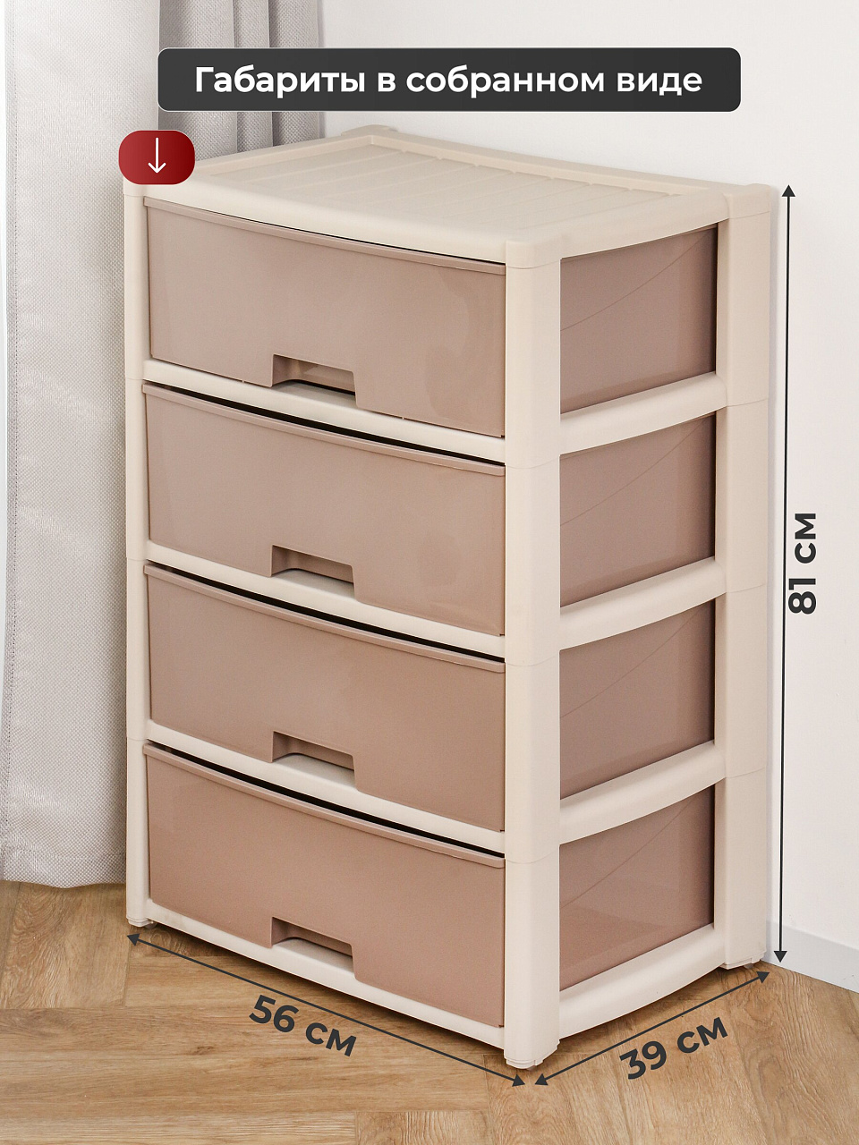 Вы можете приобрести «Комод 4 ящика, Колорит, 56х39х81 см, бежевый, широкий, М8759, Альтернатива» и другие товары в нашем интернет-магазине в Брянске по низким ценам и с бесплатным самовывозом.