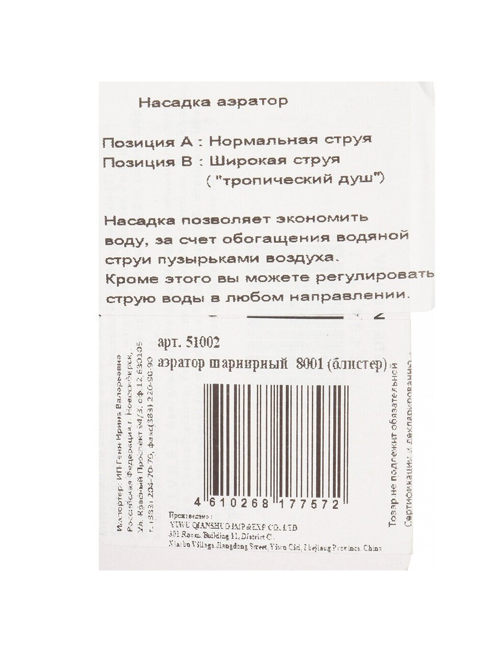 Вы можете приобрести «Аэратор для смесителя, 2 режима, шарнирный, индивидуальная упаковка, ComfortFactor, 51002» и другие товары в нашем интернет-магазине в Шахтах по низким ценам и с бесплатным самовывозом.
