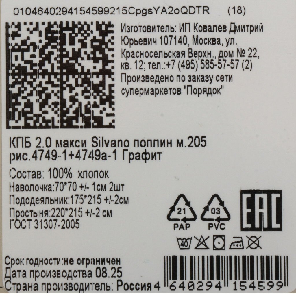 Вы можете приобрести «Постельное белье 2-сп, пр215х220, 2н70х70, п175х215, Silvano, попл, Графит» и другие товары в нашем интернет-магазине в Железногорске по низким ценам и с бесплатным самовывозом.