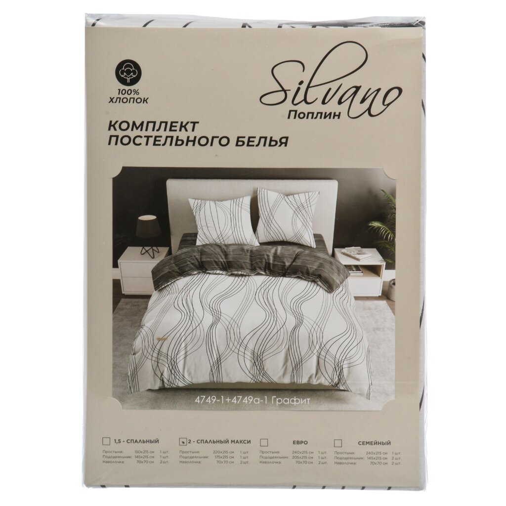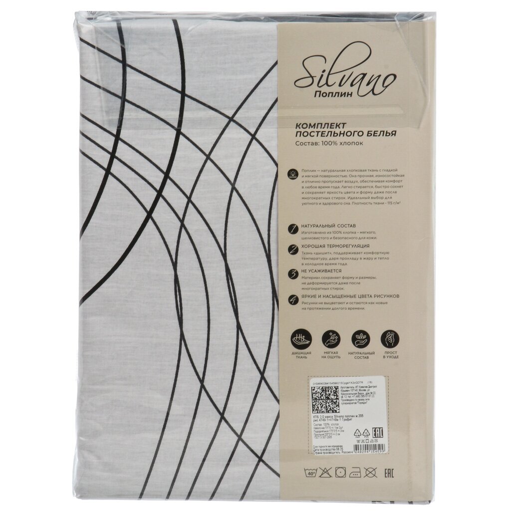 Постельное белье 2-спальное Silvano «Графит» из поплина — стиль, комфорт и долговечность для вашего сна. Подарочная упаковка, 100% хлопок, идеальный размер для двуспальной кровати.
