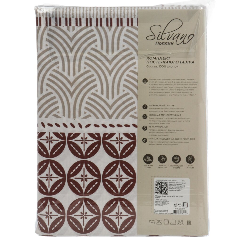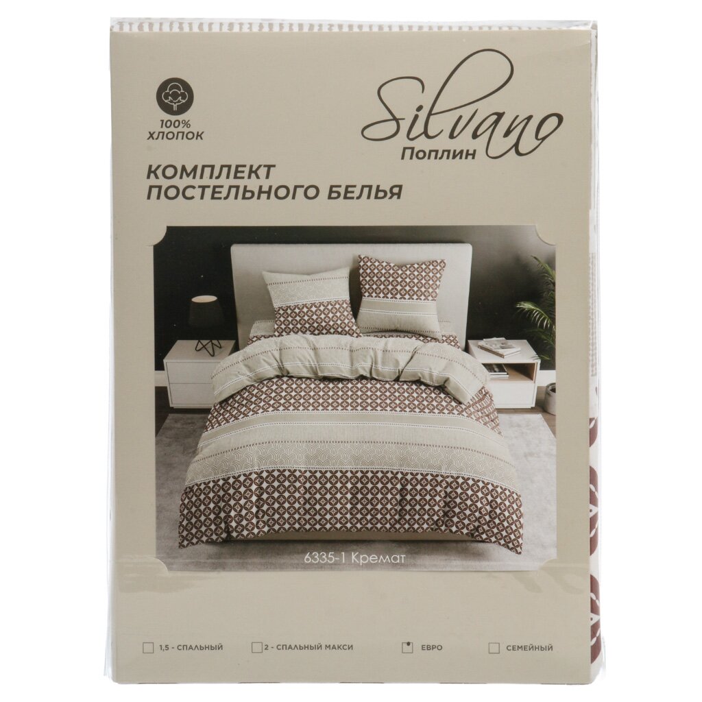 Постельное белье Silvano «Кремат» евро: комфортный поплин, 100% хлопок, 4 предмета, стильный орнамент — идеальный выбор для дома и подарка.