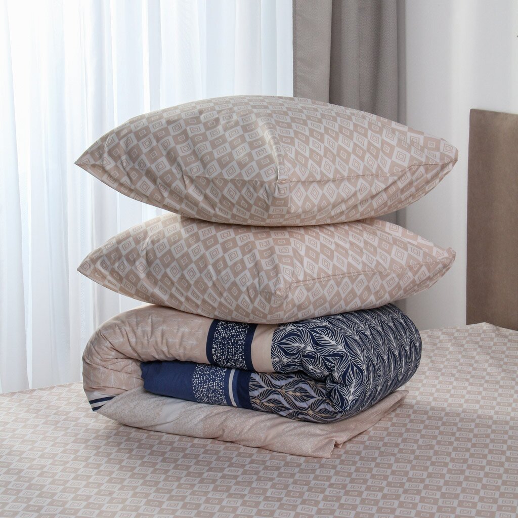 Комплект выполнен из 100% хлопкового поплина — плотной и долговечной ткани, которая хорошо держит форму, не вызывает раздражения и подходит для регулярного использования.