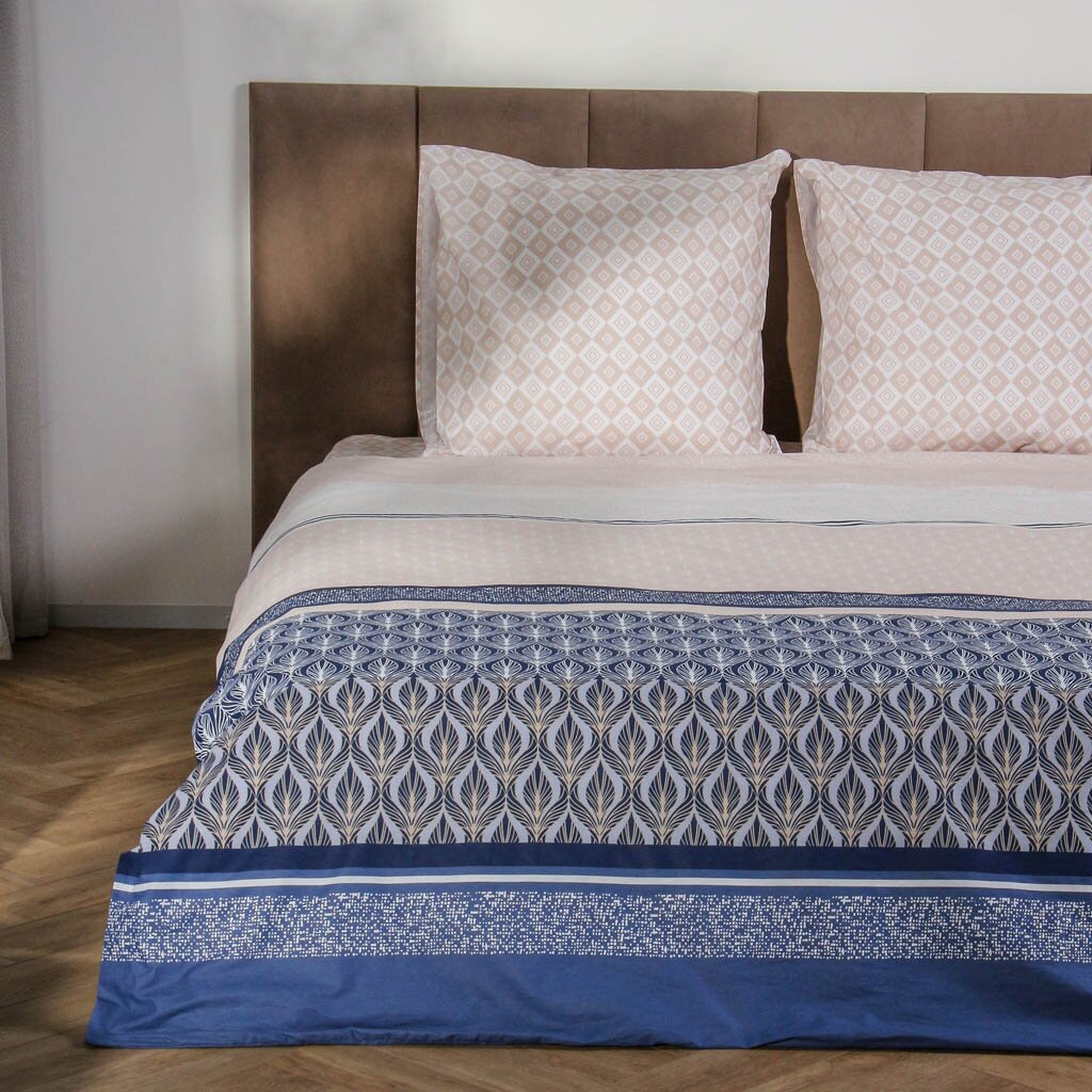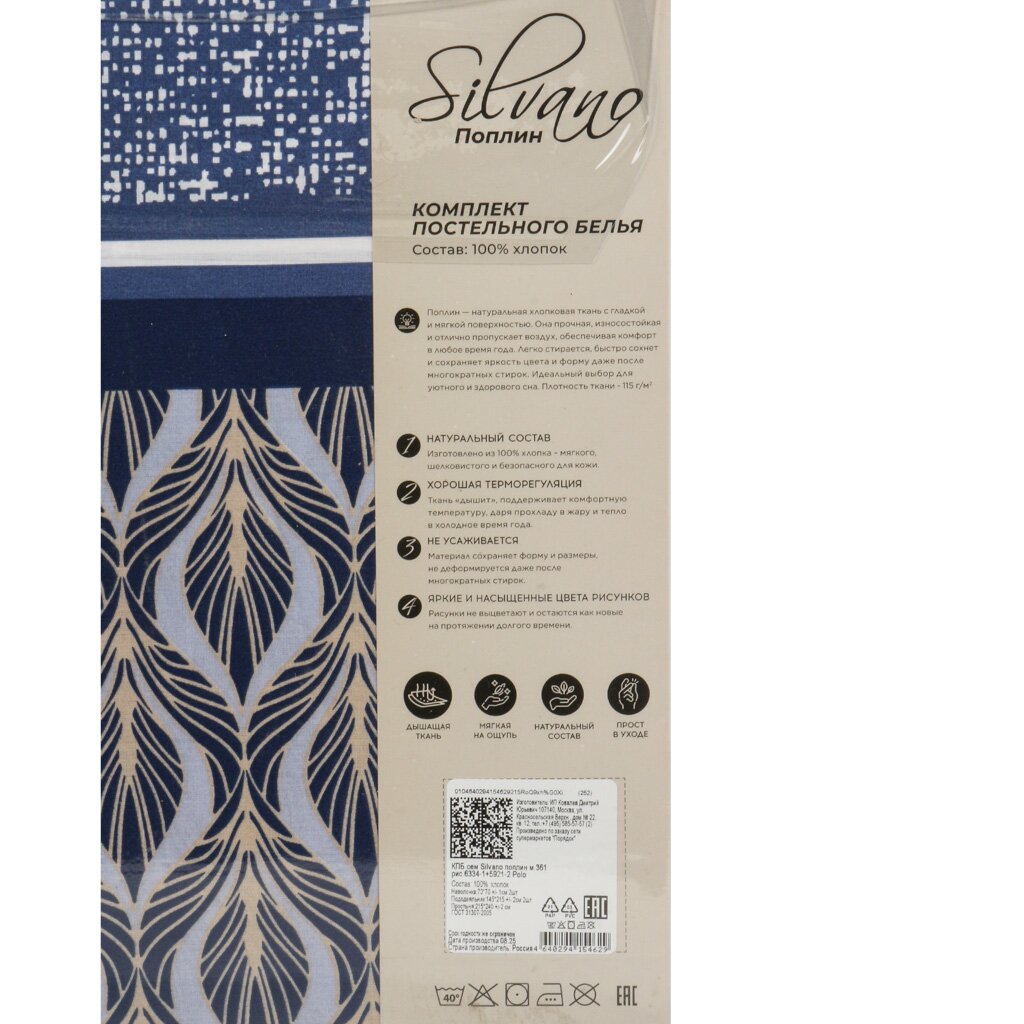 Постельное белье Silvano Polo семейное: 100% хлопок-поплин, 5 предметов, синий орнамент — идеальный подарок для уюта и крепкого сна.