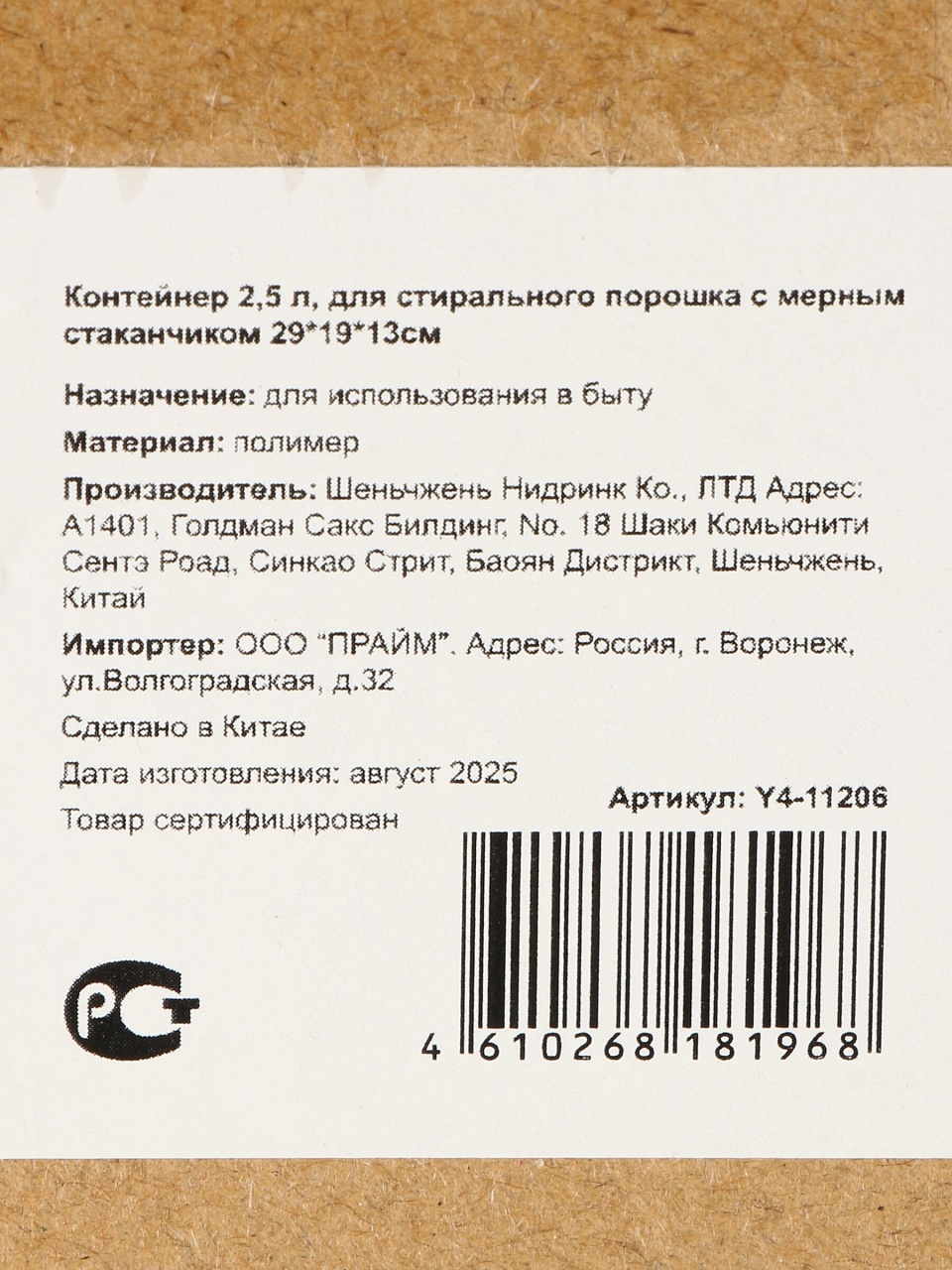 Контейнер 2.5 л, 29х19х13 см, для стирального порошка, с мерным стаканчиком, Y4-11206