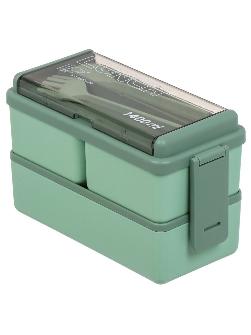 Ланч-бокс 1.4 л с герметичной крышкой и приборами: удобно брать обед в школу, на работу или дачу — свежесть блюд до 8 часов!