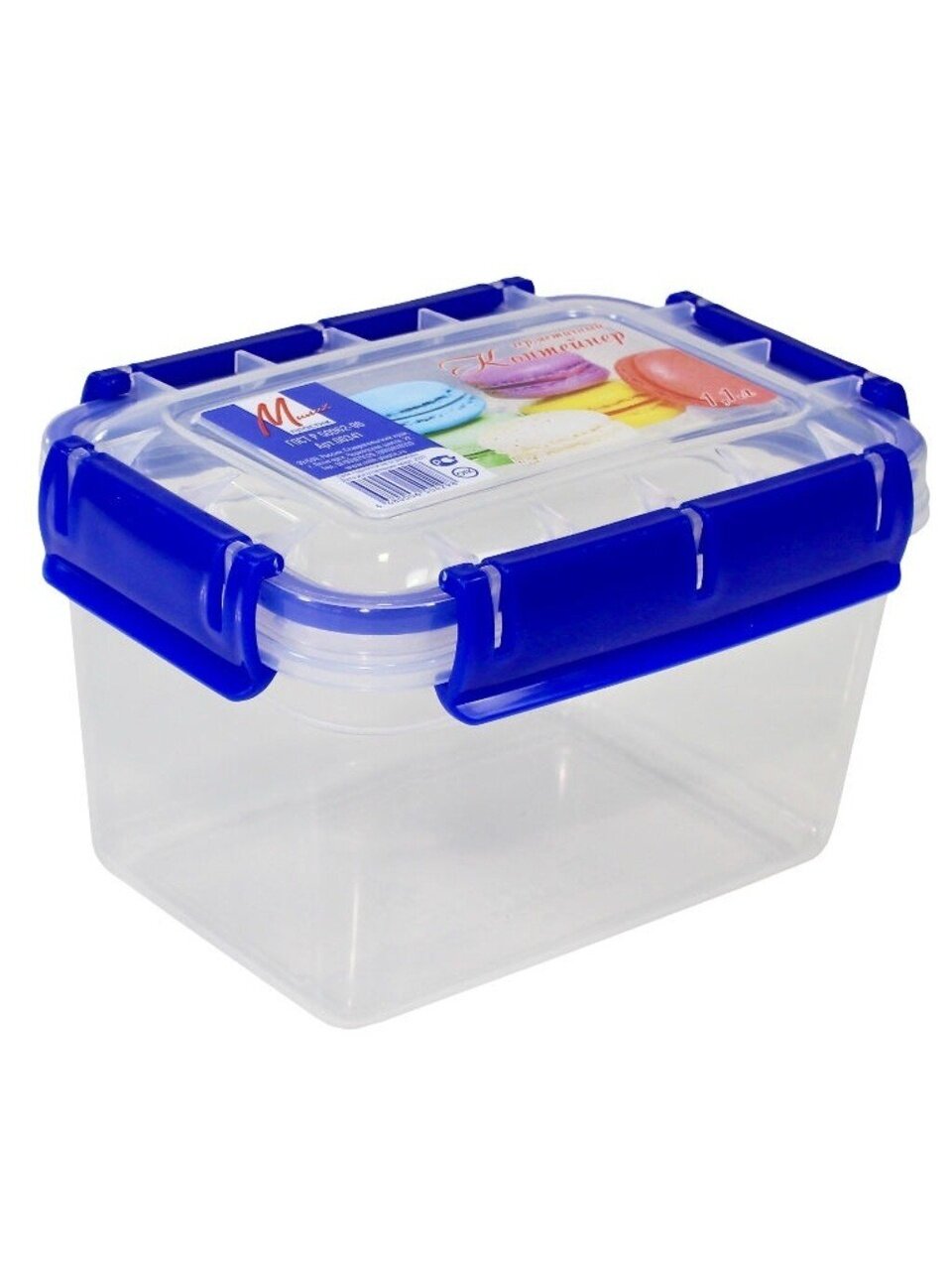 Контейнер прямоугольный, объём — 1.1 литра, размеры: длина 16 см, ширина 12 см, высота 10 см, цвет — синий.