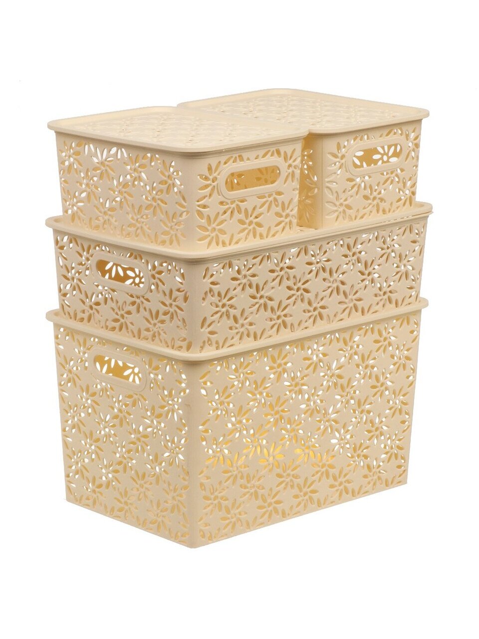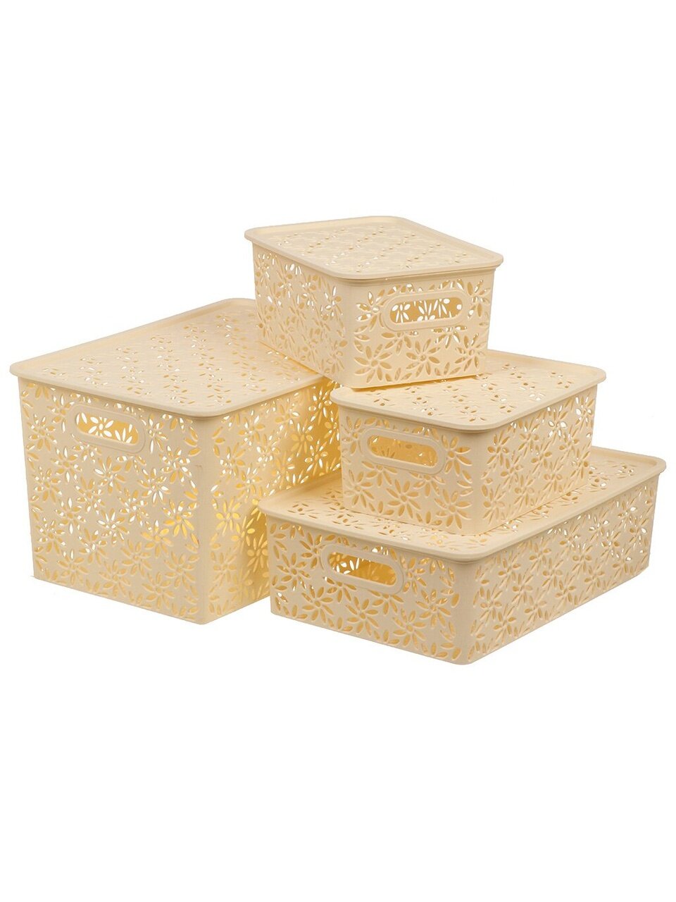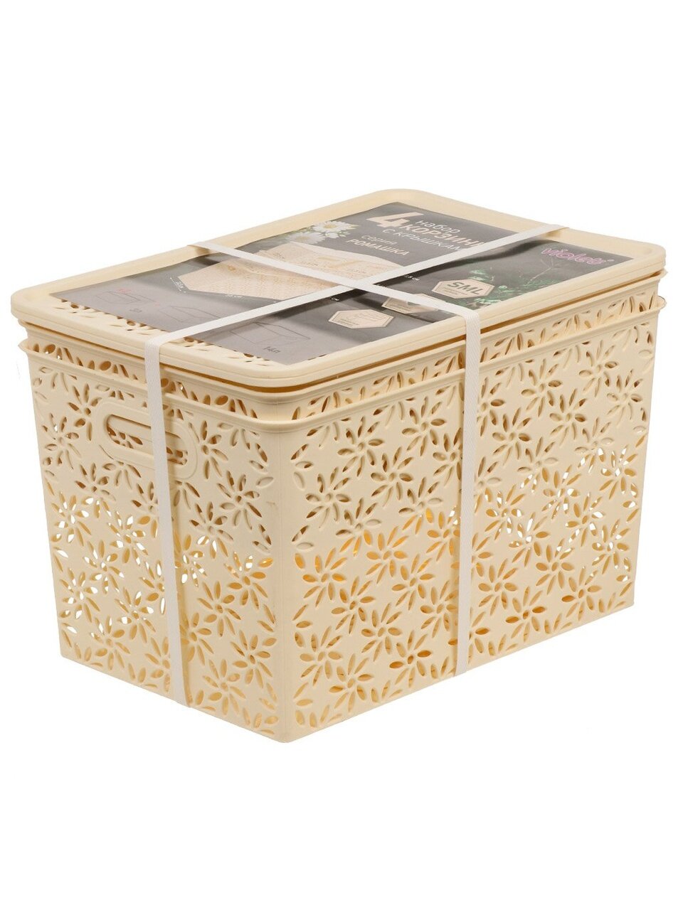 Вы можете приобрести «Набор корзин 4 шт, для хранения, пластик, слоновая кость, 14 л, 7.5 л, 3 л - 2 шт, с крышкой, Violet, Ромашка, 510426» и другие товары в нашем интернет-магазине в Коврове по низким ценам и с бесплатным самовывозом.