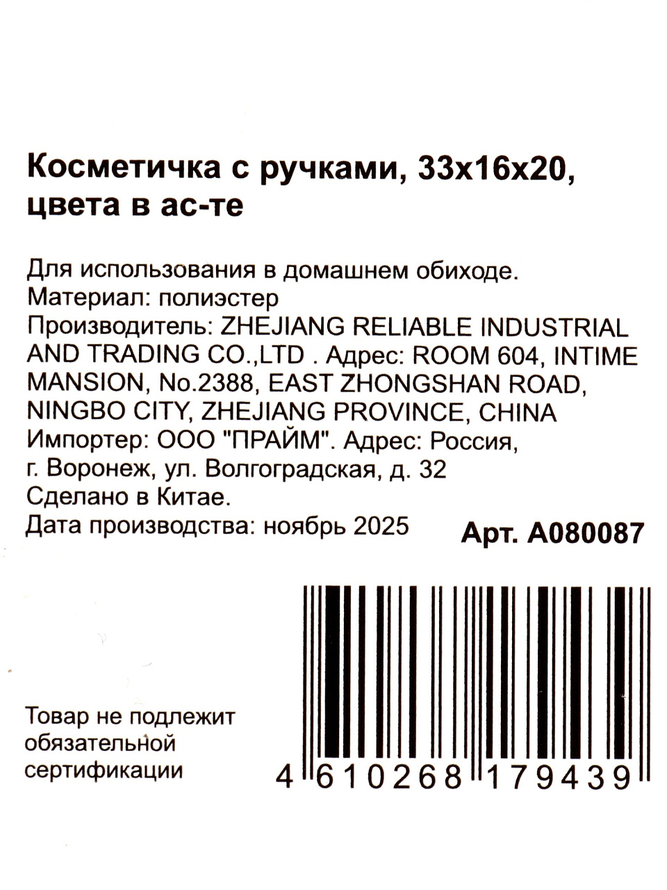 Вы можете приобрести «Косметичка 33х16х20 см, в асс, A080087, с ручками» и другие товары в нашем интернет-магазине в Краснодаре по низким ценам и с бесплатным самовывозом.