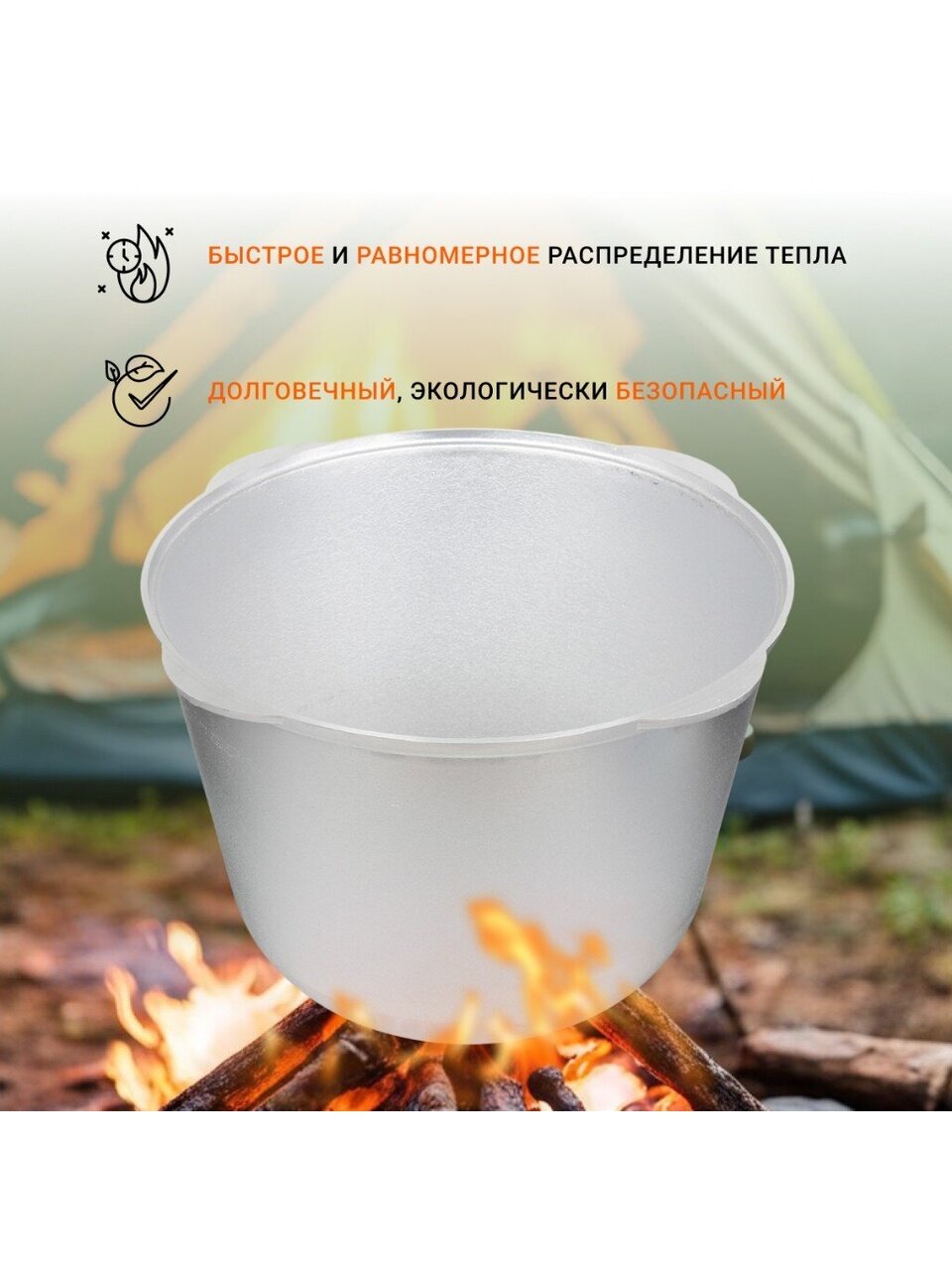 Котелок Kukmara — идеальный выбор для любителей активного отдыха и вкусной еды на природе. Изготовленный из высококачественного литого алюминия, он обеспечивает равномерное распределение тепла и длительное сохранение температуры, позволяя приготовить самые разнообразные блюда — от ароматного плова до нежной каши.