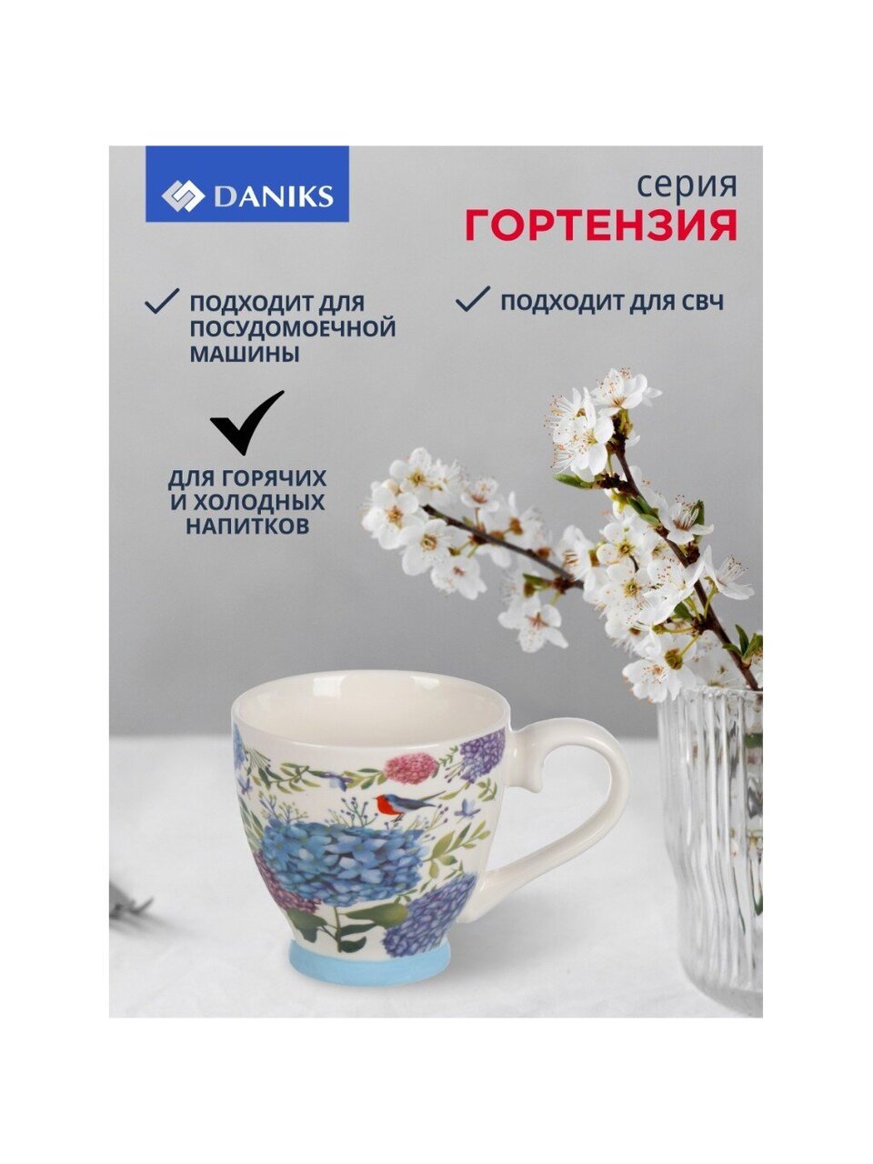 Керамическая кружка Daniks «Гортензия», 450 мл — идеальный выбор для уютных чаепитий дома и на даче. Большой объём, современный дизайн, подходит для СВЧ и посудомоечной машины.