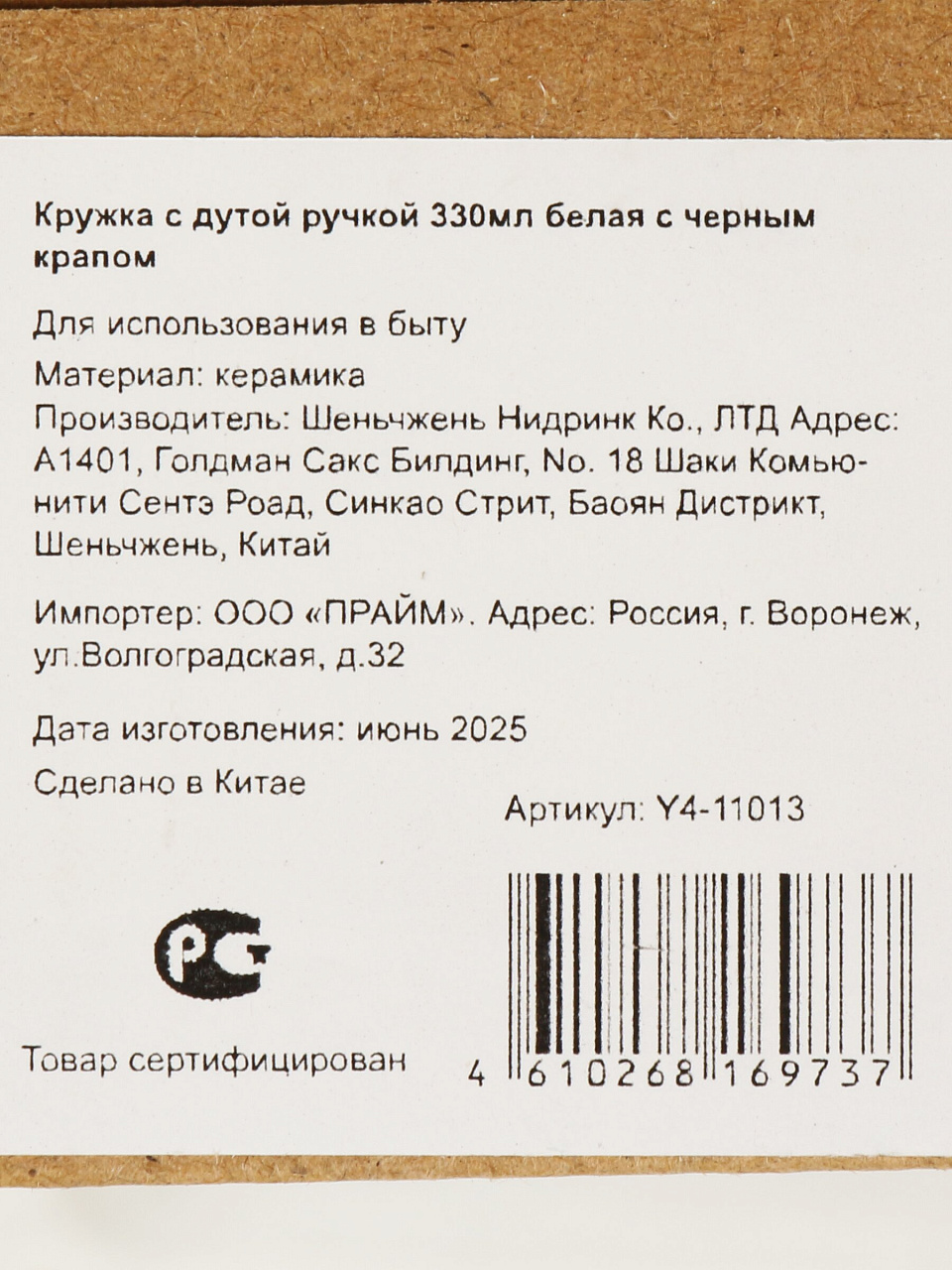 Кружка керам, 270 мл, с дутой ручкой, бел с чер крапом, Y4-11013