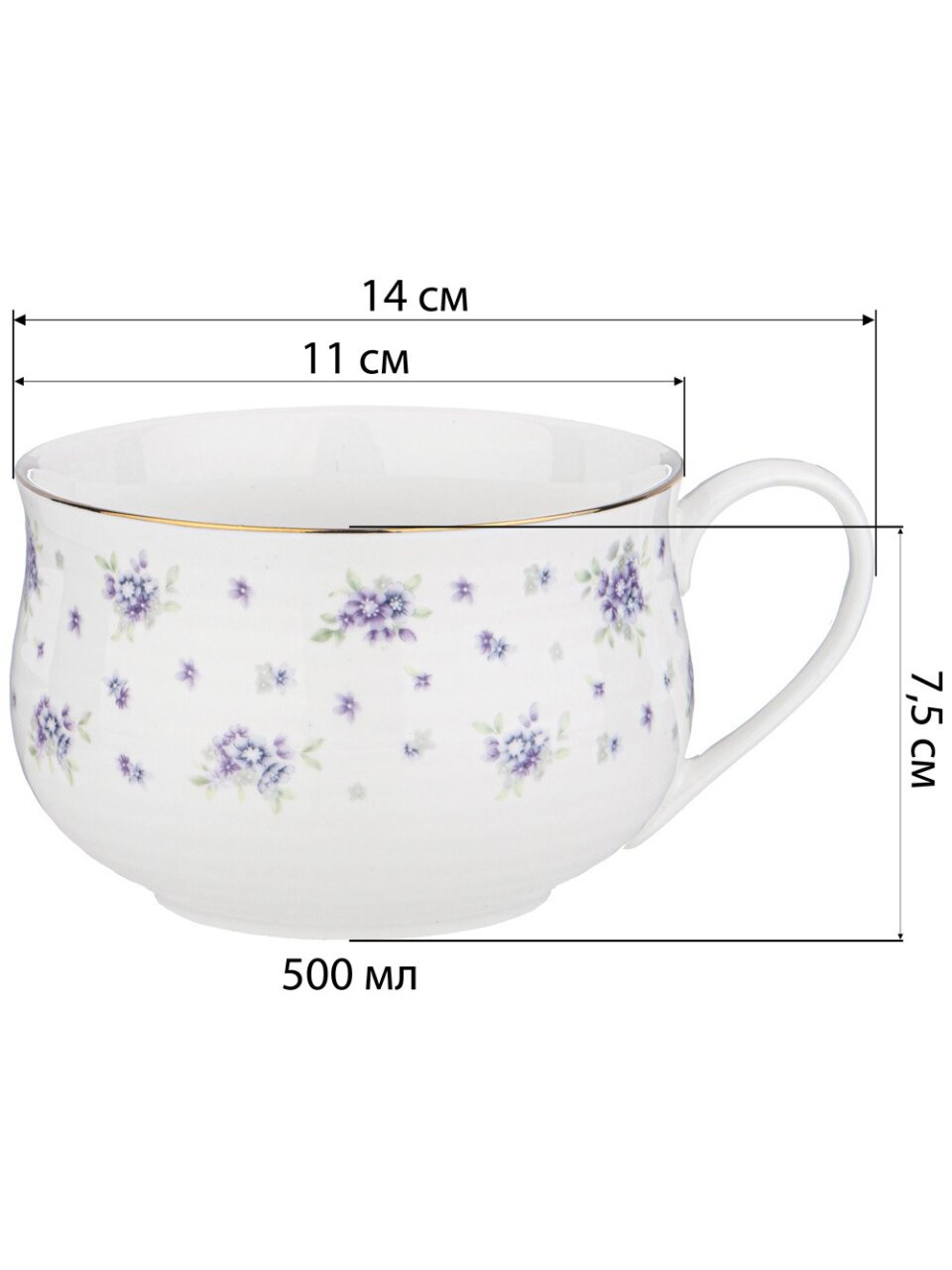 - Удобный объём 500 мл: оптимально для больших порций чая, кофе или какао, изготовлена из прочного фарфора.