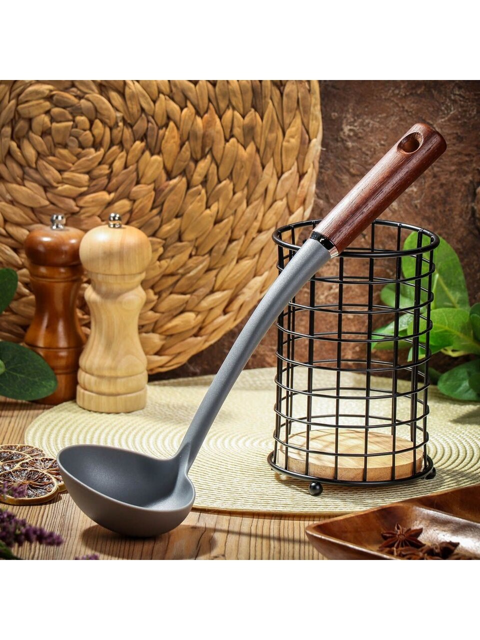 Половник нейлоновый - незаменимый помощник на кухне для любой хозяйки. С помощью него вы сможете легко и быстро разлить первые блюда по тарелкам или равномерно распределить вторые блюда по сковородкам. Половник изготовлен из нейлона, который не боится высоких температур и не впитывает запахи. Он имеет специальное отверстие на ручке для удобного хранения. Стильный и современный дизайн половника прекрасно дополнит интерьер вашей кухни.