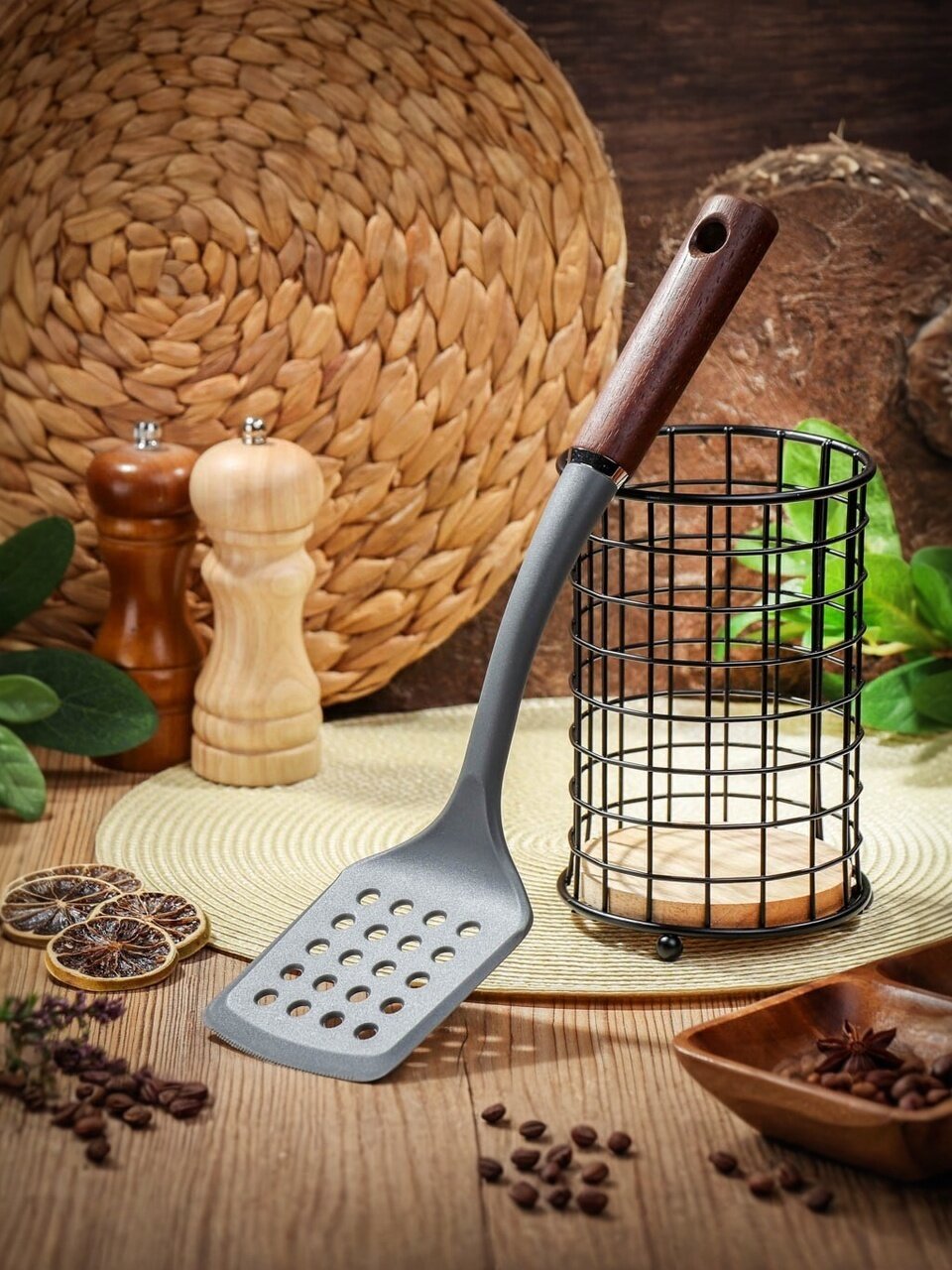 - Наличие прорезей на лопатке позволяет жиру и маслу свободно стекать при использовании, что предотвращает пригорание продуктов.