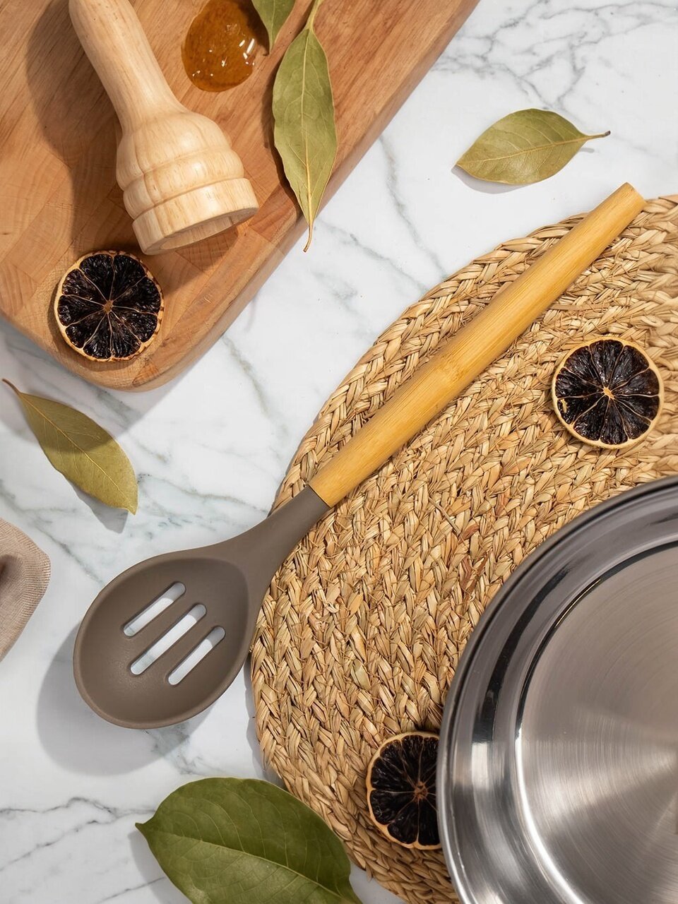 Силикон и бук - это материалы, которые обладают высокой прочностью и долговечностью. Это означает, что такая ложка прослужит вам долгое время без потери своих свойств, что делает ее надежным и практичным инструментом на кухне.