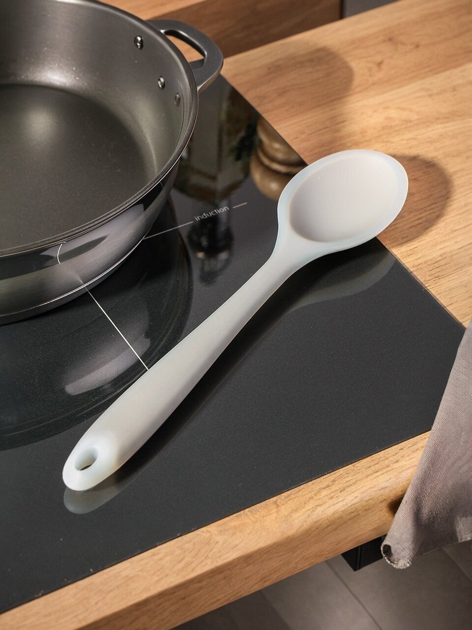 Изготовленная из высококачественного силикона, она обеспечивает долговечность и удобство в использовании. Ложка оснащена навеской, что позволяет удобно хранить ее на кухне.
