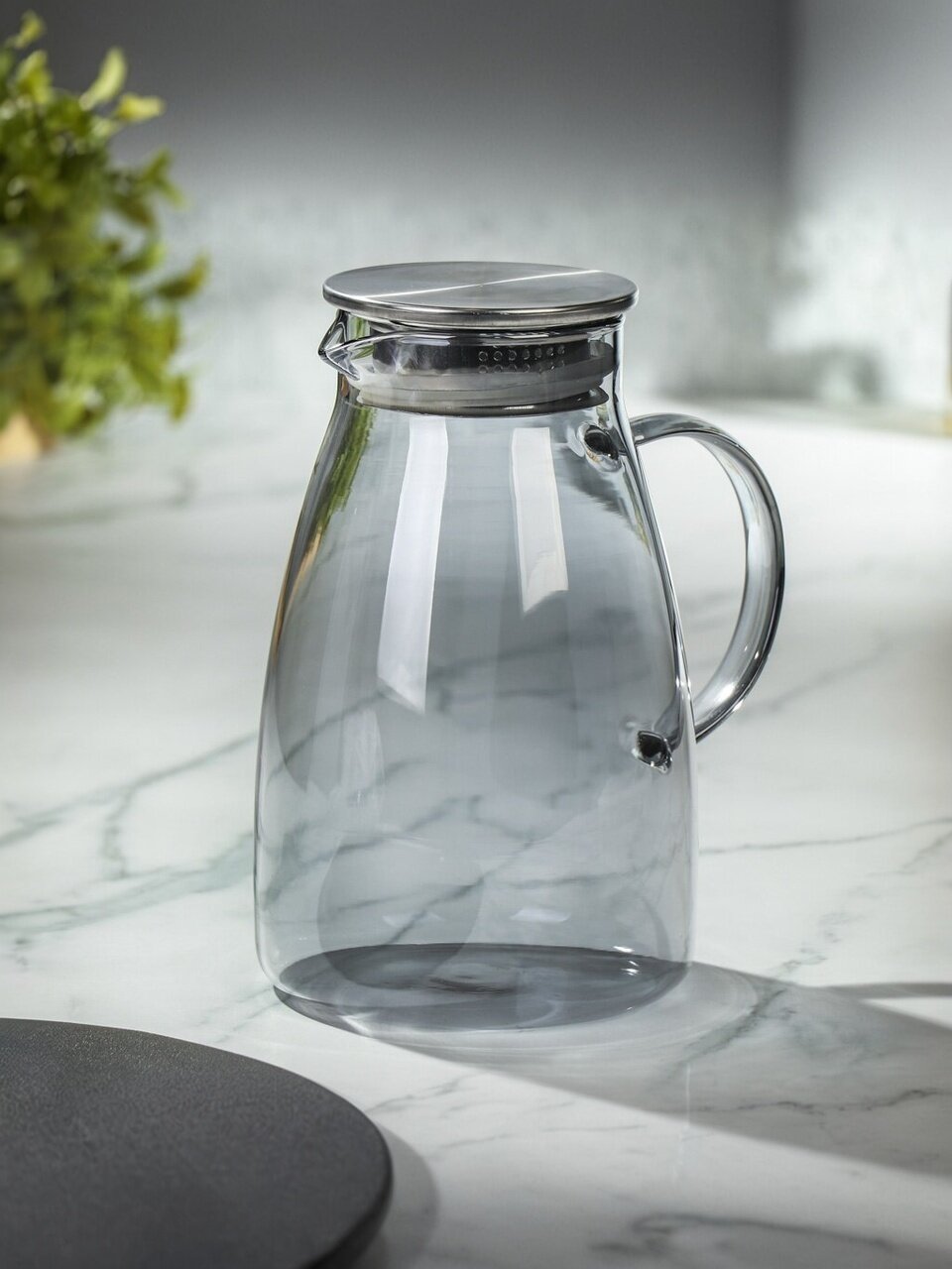 Кувшин из боросиликатного стекла 1.5 л с крышкой: стильный выбор для горячих и холодных напитков дома и на даче. Лёгкий, прочный, универсальный.