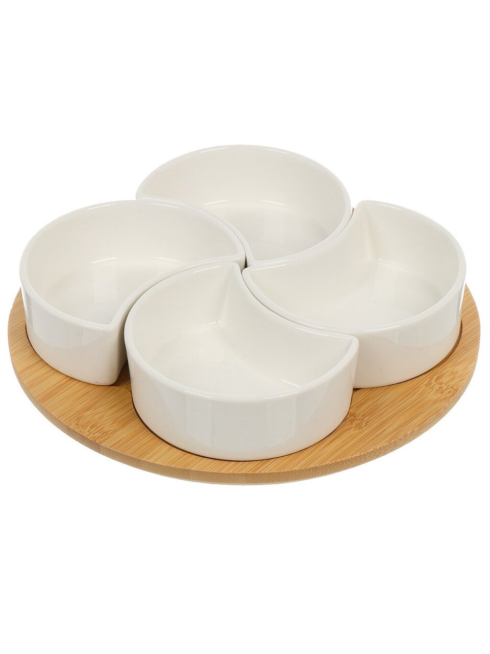Вы можете приобрести «Менажница фарфор, дерево, 23х6.5 см, 4 секции, деревянная подставка, Lefard, Native, 263-1349» и другие товары в нашем интернет-магазине в Тамбове по низким ценам и с бесплатным самовывозом.