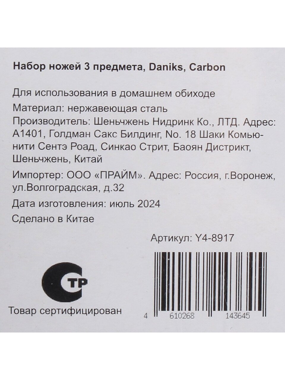 Вы можете приобрести «Набор ножей 3 предмета, в блистере, нержавеющая сталь, рукоятка пластик, Daniks, Carbon, Y4-8917» и другие товары в нашем интернет-магазине в Армавире по низким ценам и с бесплатным самовывозом.