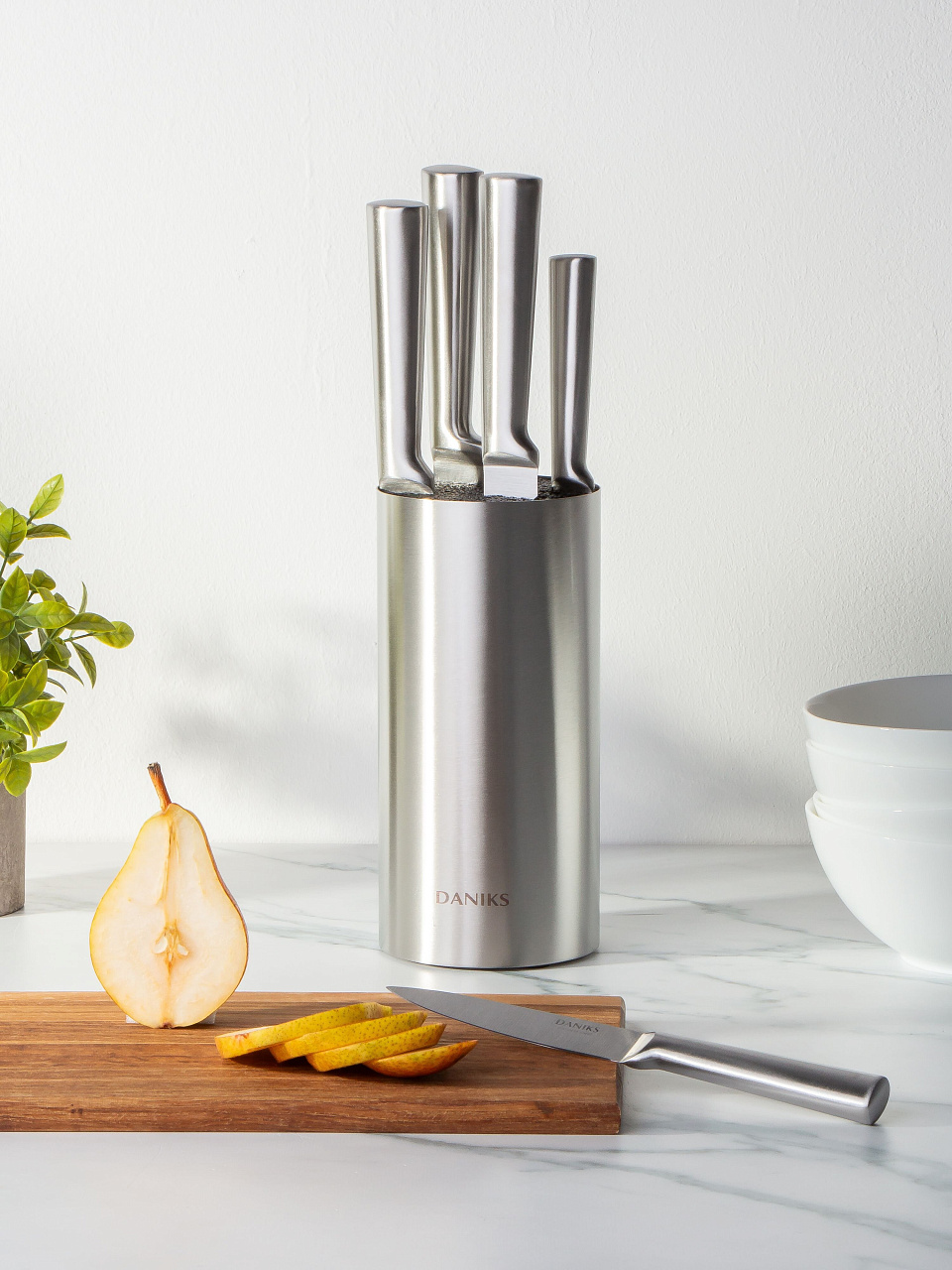 Стильная кухня начинается с правильных инструментов. Набор ножей Daniks Фортуна YW-A155 – идеальный выбор для современных хозяек и ценителей функциональности. Комплект из 6 предметов включает пять профессиональных ножей с лезвиями из высококачественной нержавеющей стали и прочную металлическую подставку. Серебристый цвет гармонично впишется в любой интерьер, подчеркнет вкус и статус владельца. Все ножи цельнометаллические, что гарантирует долговечность и надежность даже при интенсивном использовании.