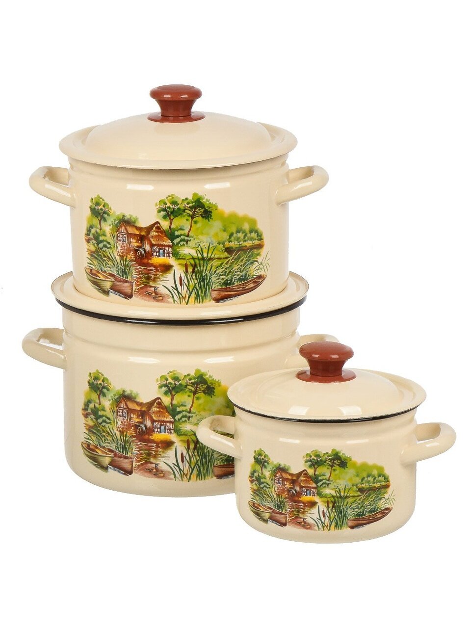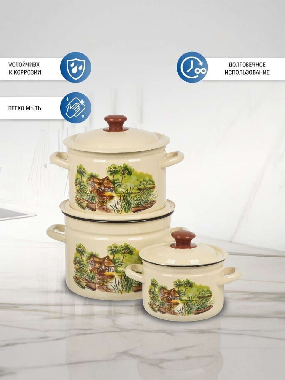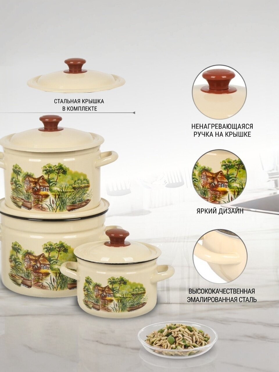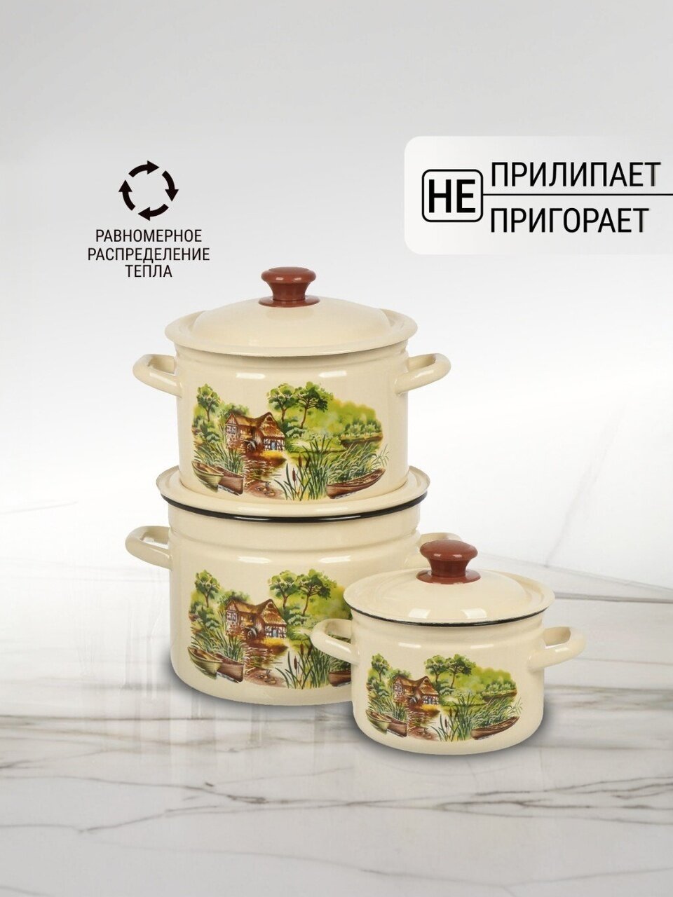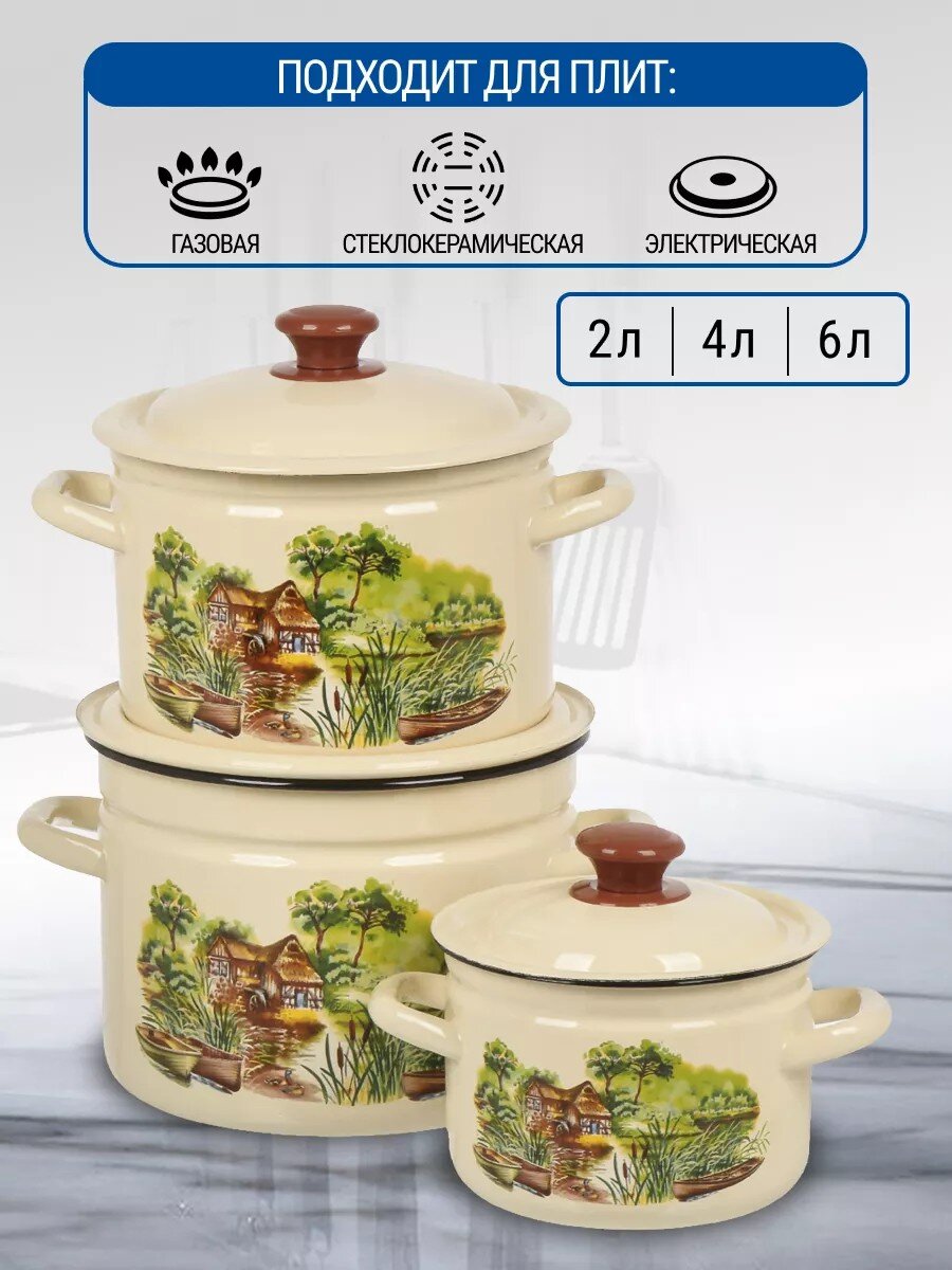 Набор кастрюль из эмалированной стали 6 предметов — практичный выбор для дома и дачи: 2, 4, 6 л, универсальный дизайн, долговечность и надёжность.