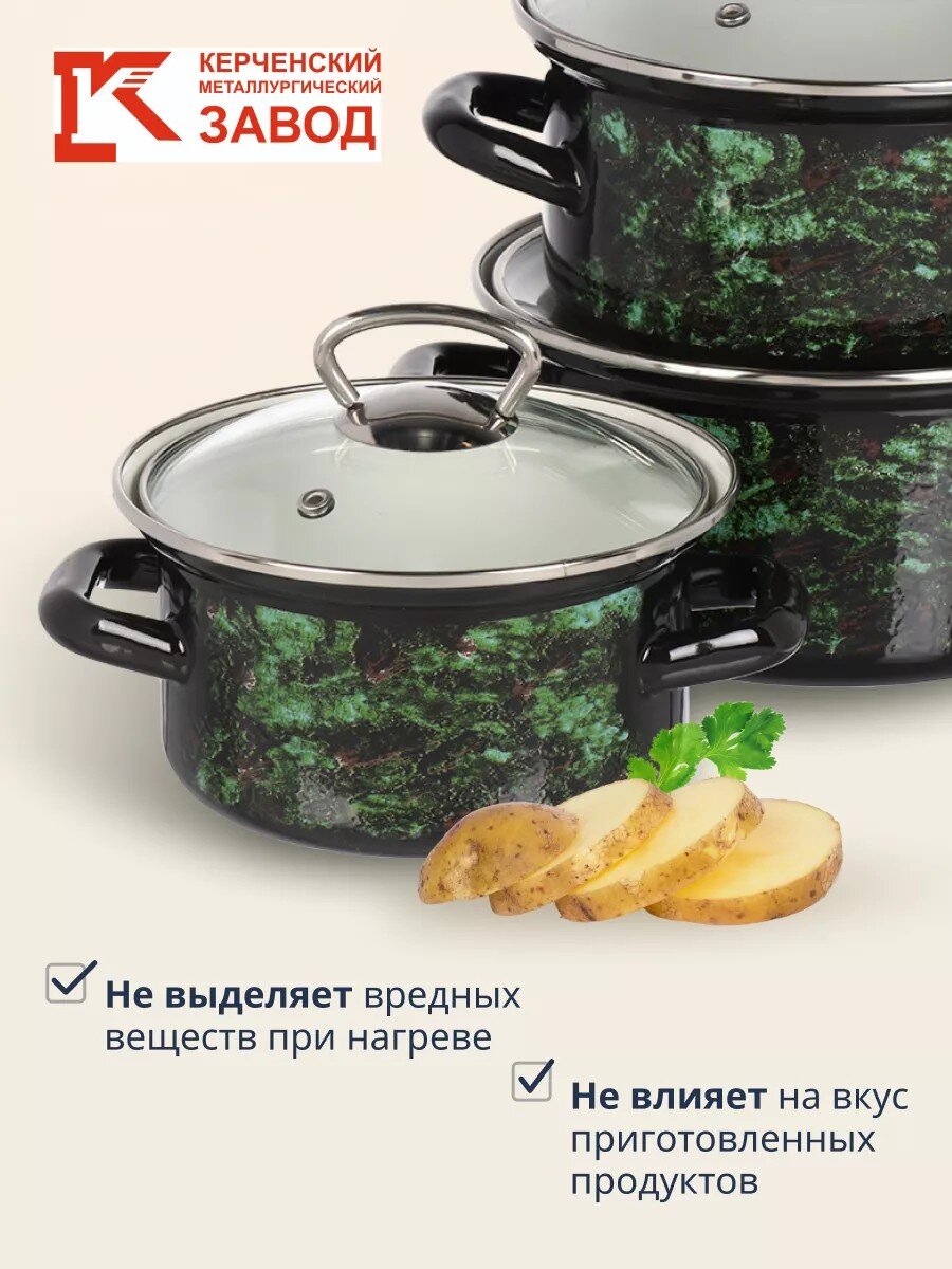 Вы можете приобрести «Набор посуды эмалированная сталь, 3 предмета, кастрюли 1.0, 1.5, 2.3 л., МП, Керченский металлургический завод, Малахит-1-Экстра стиль, черный» и другие товары в нашем интернет-магазине в Серпухове по низким ценам и с бесплатным самовывозом.