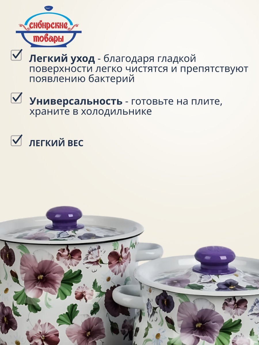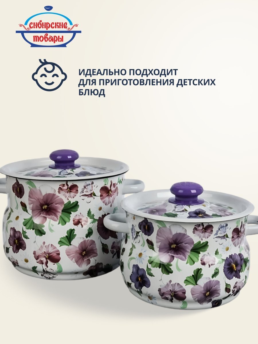 Набор эмалированных кастрюль 4 и 5,5 л «Анютины глазки 10» — практичное решение для дома и дачи: долговечная сталь, яркий дизайн, выгодная цена.
