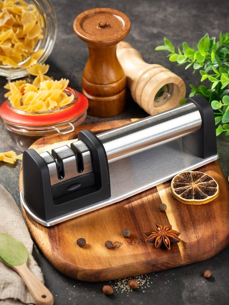 Вы можете приобрести «Точилка для ножей, нержавеющая сталь, 20.5х6х6.2 см, черная, Daniks, S-Z58310» и другие товары в нашем интернет-магазине в Смоленске по низким ценам и с бесплатным самовывозом.