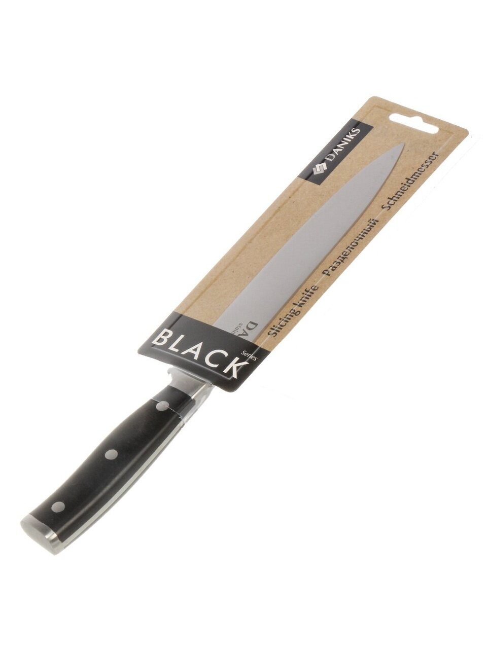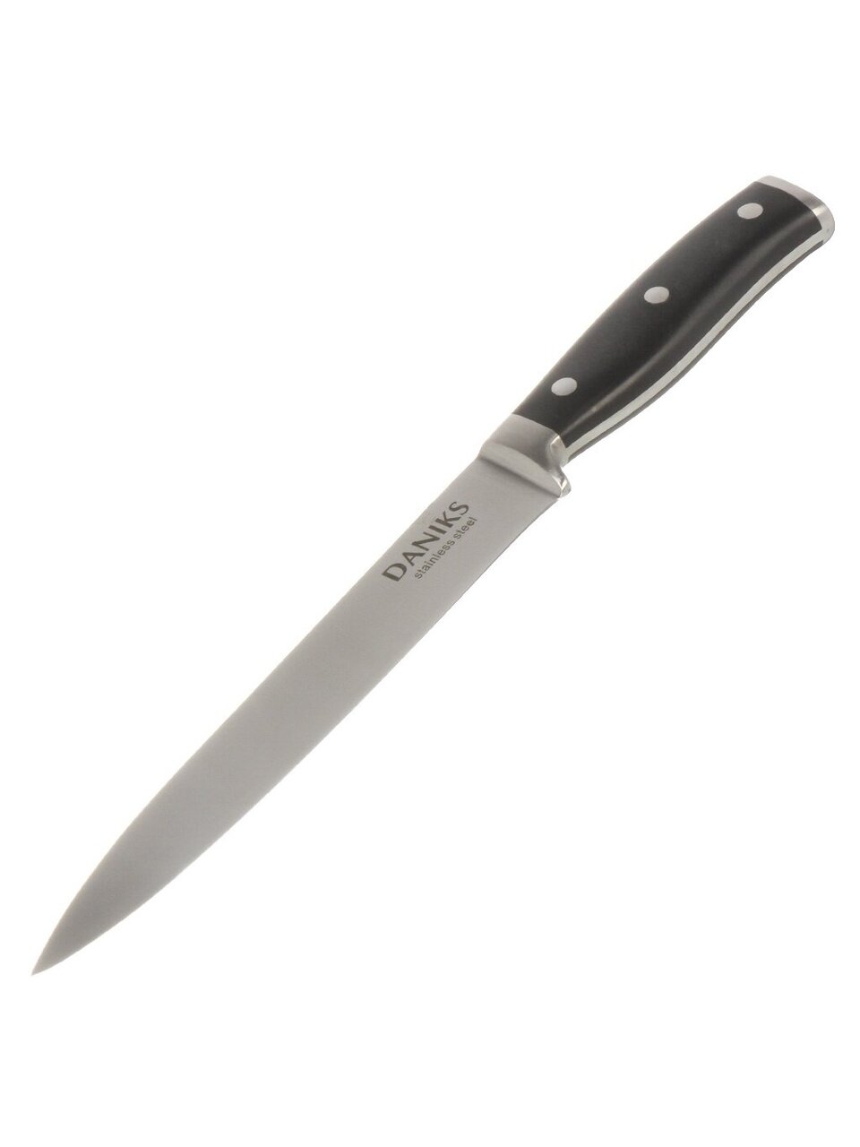 Покупка кухонного ножа Daniks Black принесет выгоду в виде упрощения и ускорения процесса приготовления пищи. Он позволяет легко и быстро нарезать любые продукты, экономя ваше время и силы. К тому же, стильный черный дизайн добавит элегантности вашей кухонной коллекции.