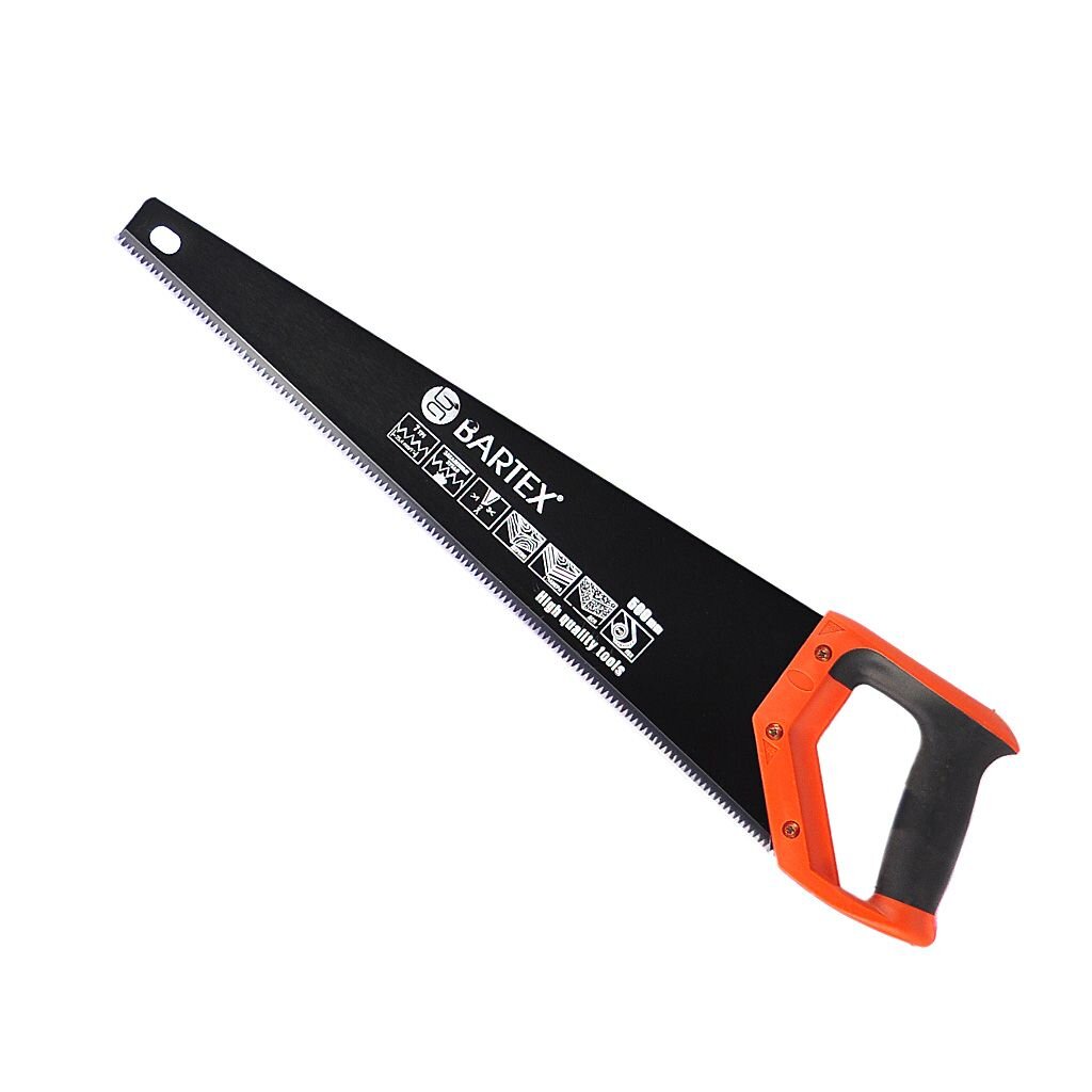 Ножовка по дереву Bartex – незаменимый инструмент для владельцев частных домов. Это отличный помощник для поддержания эстетичного вида загородного или приусадебного участка. Благодаря ножовке Bartex уровень Ваших столярных, плотницких или садовых работ станет на порядок выше при тех же временных затратах. Удобная прорезиненная рукоятка не допустит выскальзывания инструмента. Даже спустя продолжительное время работы руки мастера не почувствуют усталости, благодаря комфортному захвату.