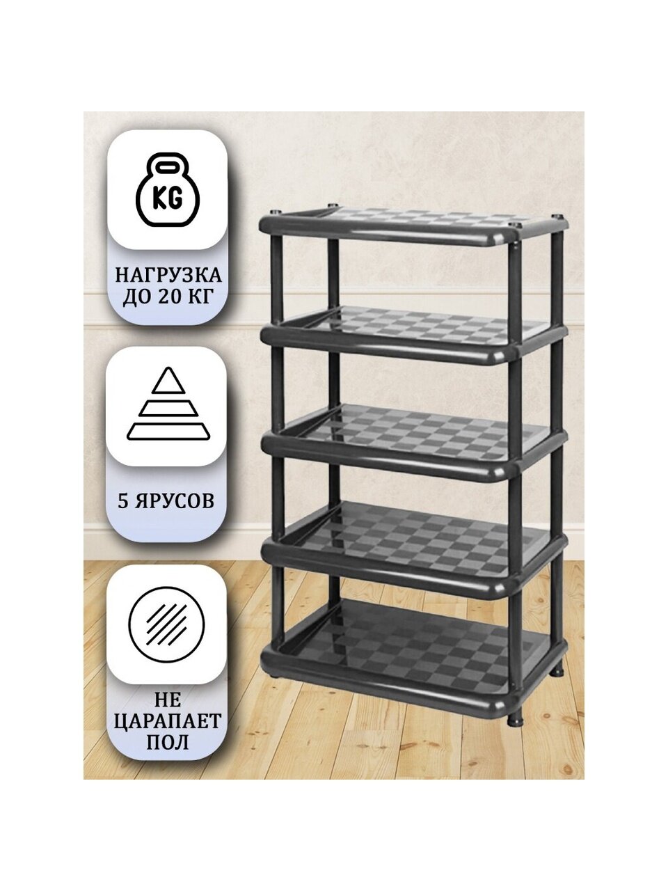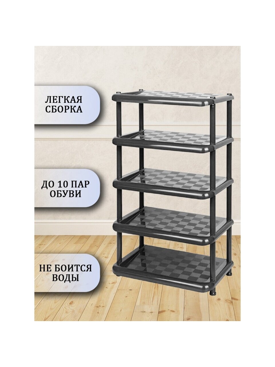 - Этажерка выполнена из высококачественного пластика и предназначена для хранения обуви в прихожей;