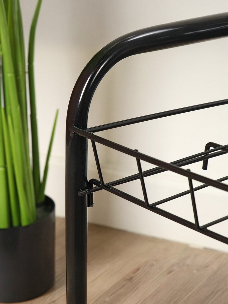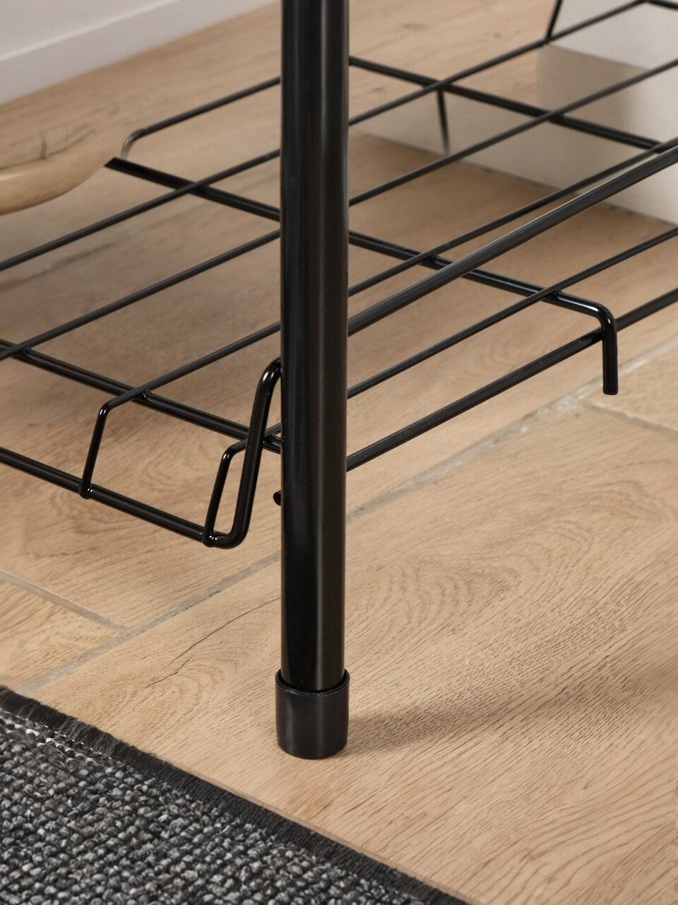 Часто спрашивают: «Как выбрать полку для обуви в прихожую?» — обратите внимание на размеры: ширина 66 см, глубина 28 см, высота 44 см. Такая полка подойдет для размещения до 8 пар обуви, включая кроссовки, ботинки и туфли. В отличие от пластиковых аналогов, металлическая рама выдерживает нагрузку до 20 кг и не боится деформаций. Не требует крепления к стене, что удобно для мобильного использования и перестановок.