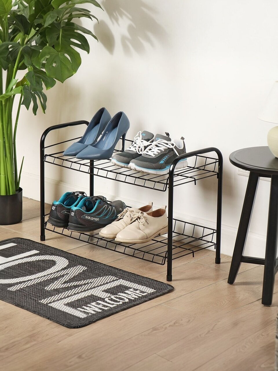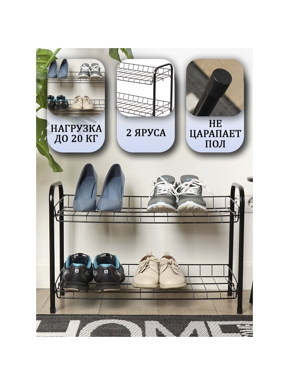 Полка для обуви Nika, металл, 2 секции, 66×28×44 см — компактное решение для порядка в прихожей: выдерживает до 20 кг, подходит для дома и дачи, стильный черный цвет.