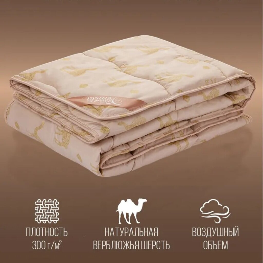 Одеяло 1.5-спальное Verossa 140х205 см: верблюжья шерсть, 300 г/м², всесезонное — натуральный комфорт для дома и дачи круглый год.