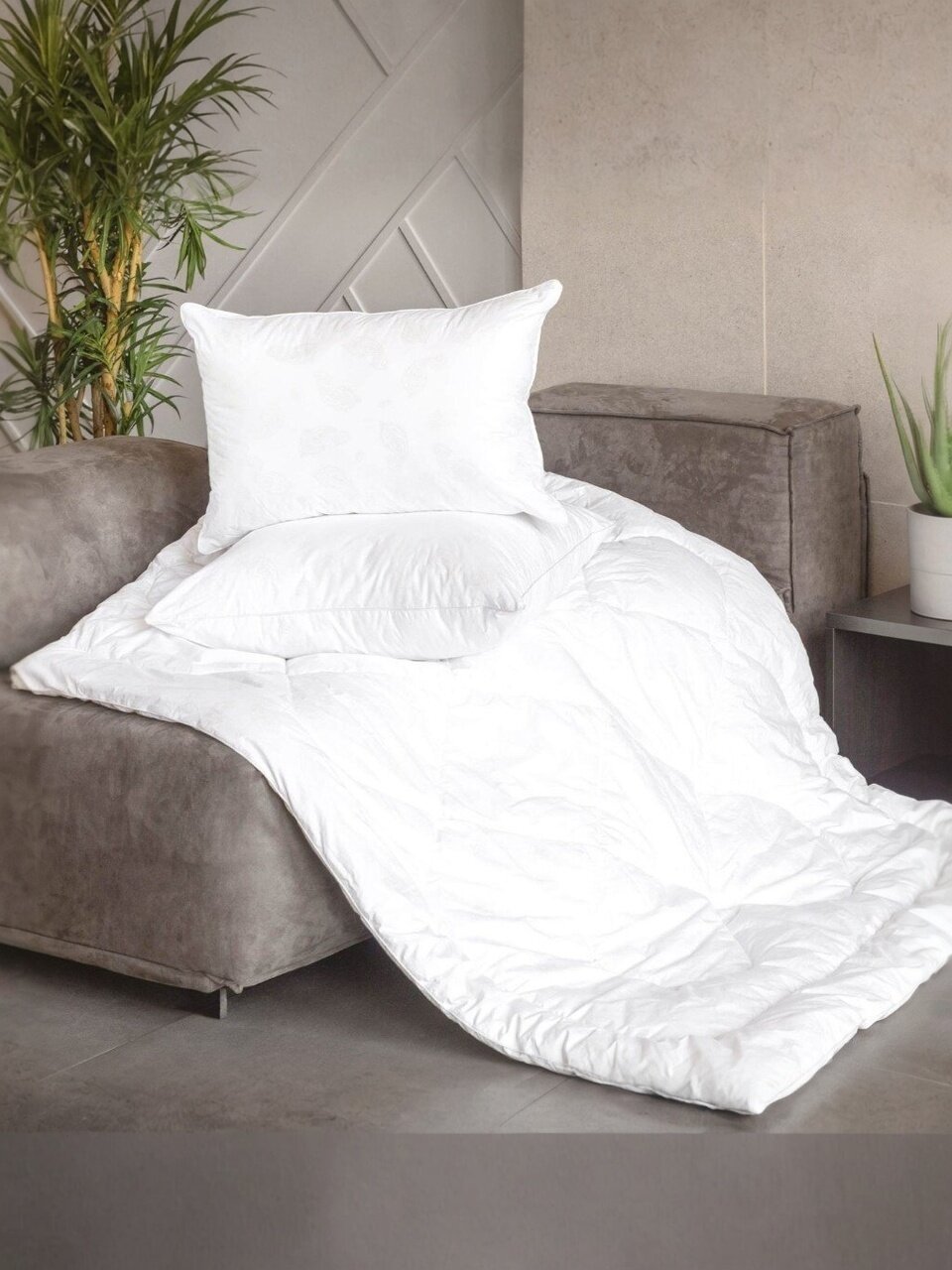 - Современный наполнитель: лебяжий искусственный пух обеспечивает мягкость, гипоаллергенность и долгий срок службы.