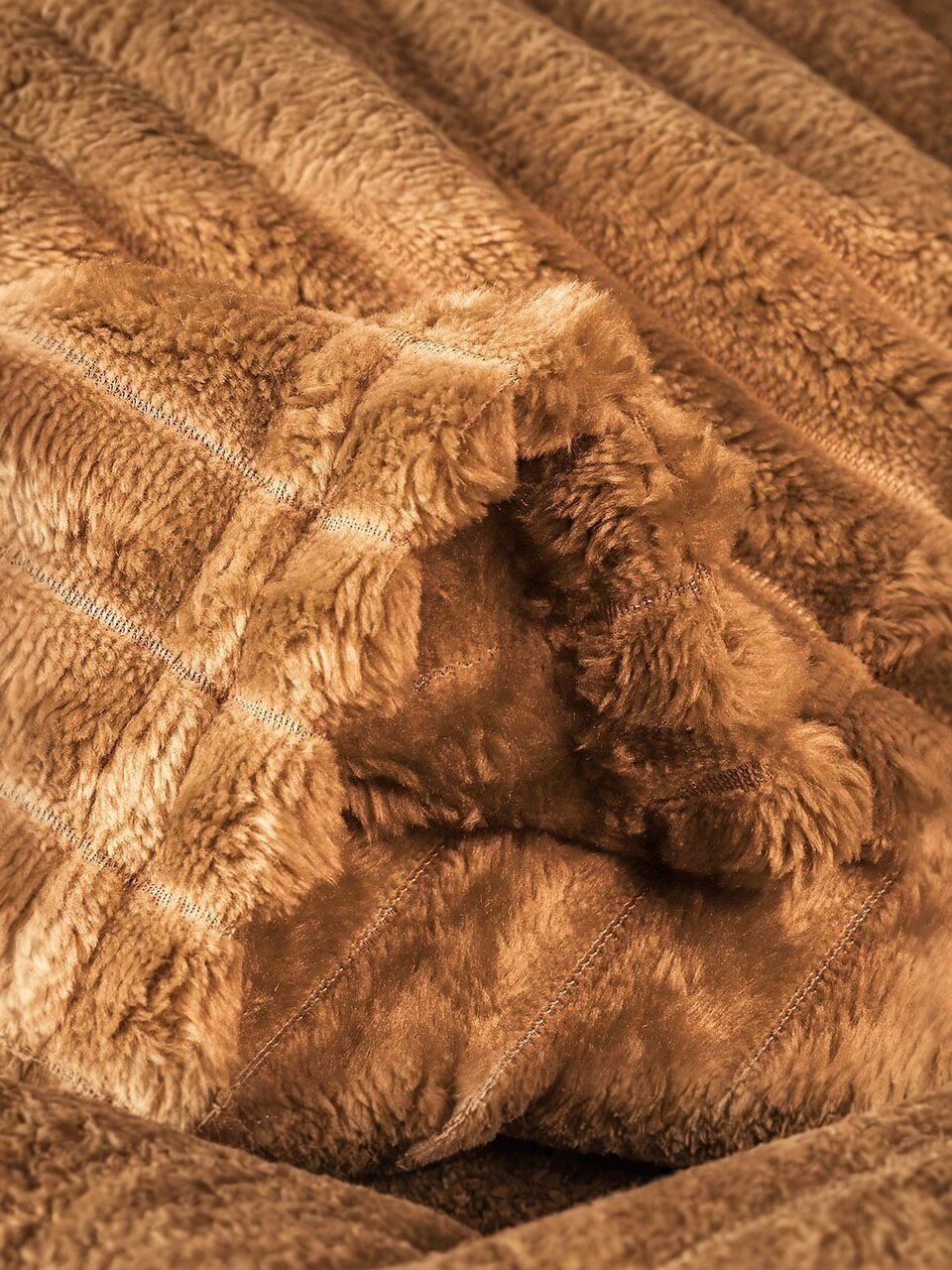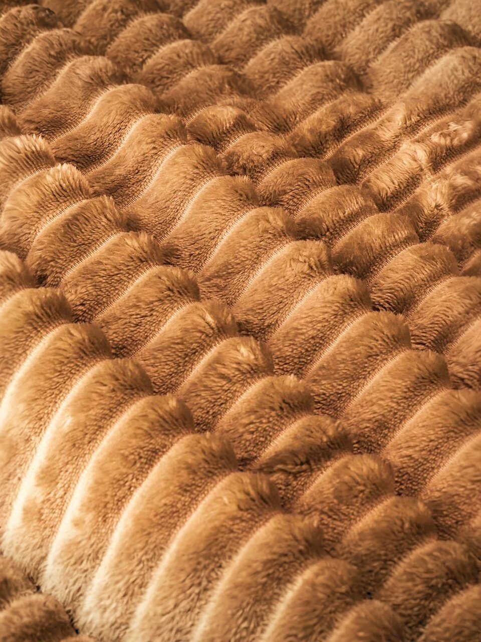 Плед выполнен из 100% полиэстера, имеет короткий плюшевый ворс и плотность 280 г/м² — это оптимально для уюта и легкости в уходе.
