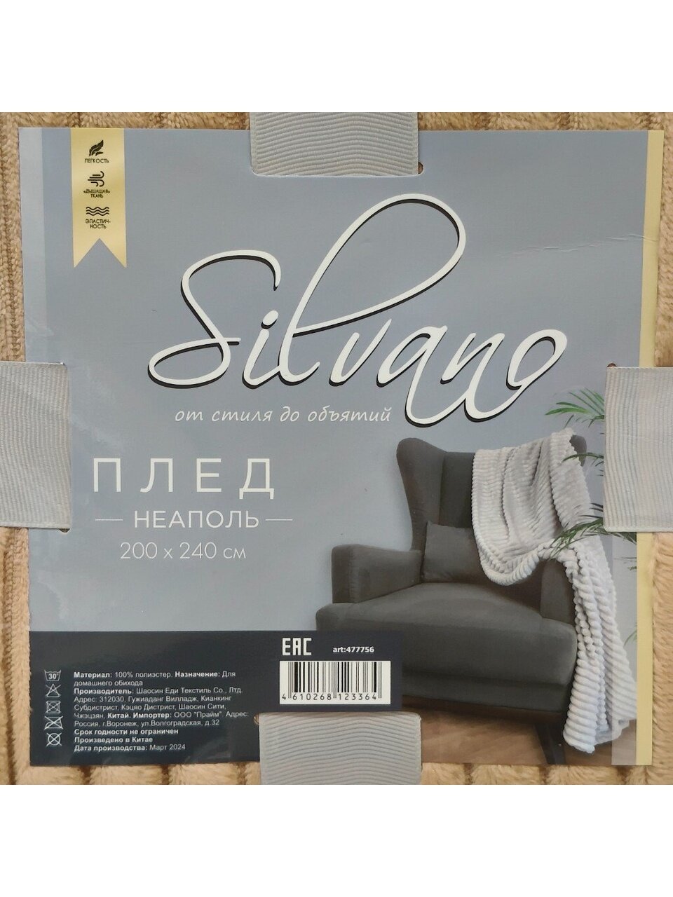 Плед евро 200х240 см Silvano Неаполь Полоски: уют, тепло и стиль для вашего дома — большой велсофт жаккард, 100% полиэстер, бронзовый, по выгодной цене.