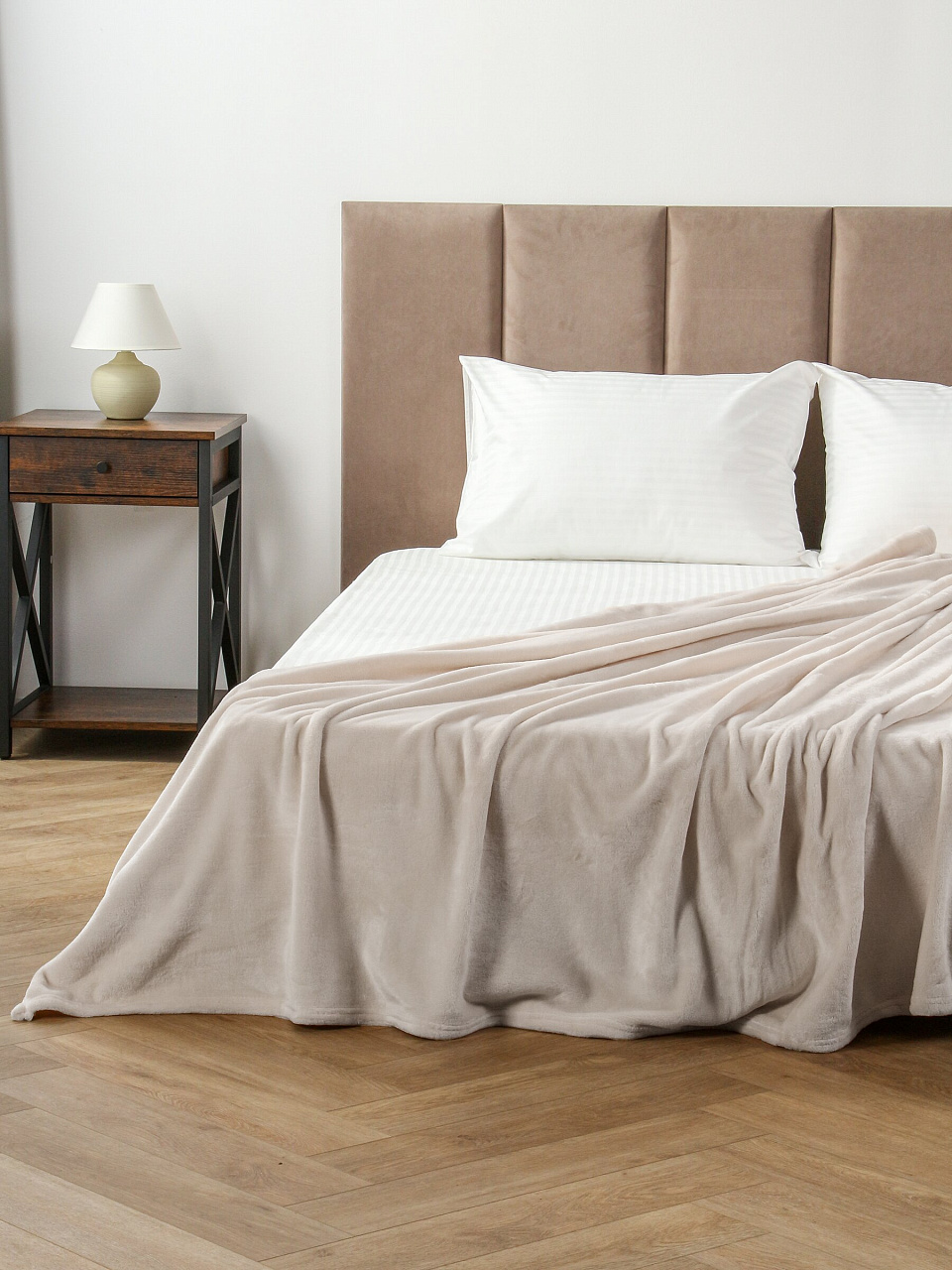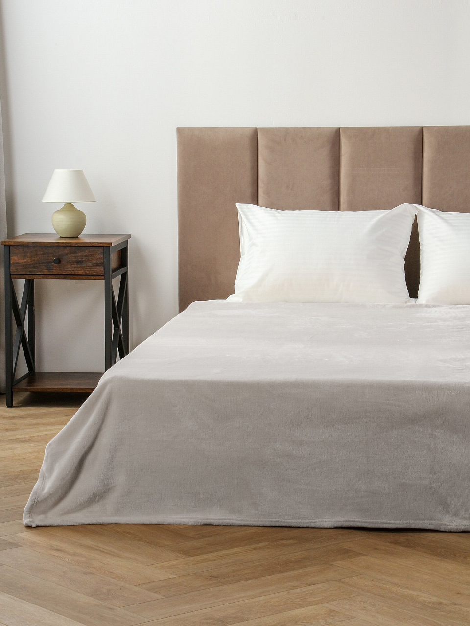 - Универсальность — однотонный светло-серый плед гармонирует с любым интерьером, практичен для подарка и ежедневного использования.