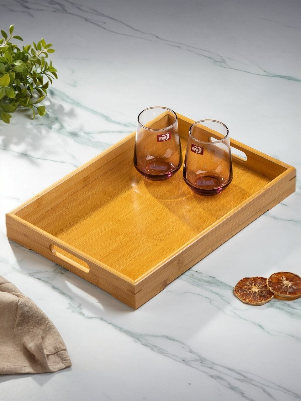 Поднос - это функциональный и стильный аксессуар для сервировки стола и стилизации домашнего пространства. Бамбук - это природный экологичный материал. Подносы можно использовать в качестве подставки под горячее. Они не боятся высоких температур.